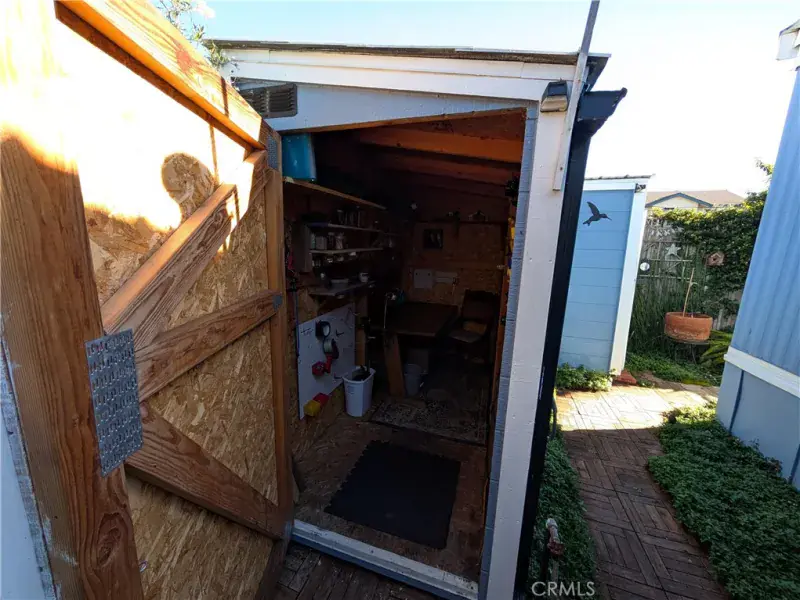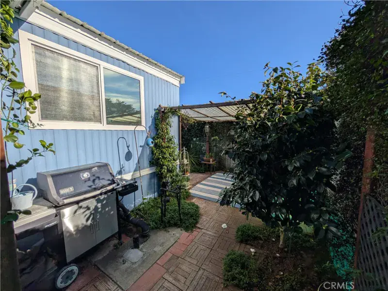 This charming one bedroom one bath mobile home shows pride of ownership. Recently painted and updated including new windows and flooring. Custom decorative entry gate. This home is ideal for a plant lover or gardener. This home is surrounded by a thoughtfully created garden that is a truly unique botanical escape. It includes a curated collection of plants making it a tranquil sanctuary. The private backyard patio is perfect for entertaining or unwinding. Bird friendly retreat. Two storage sets in back provide extra storage space. Covered carport with room for two cars. Blocks to the beach and centrally located to shopping. Located at the back of the park. Fully fenced and pet friendly.