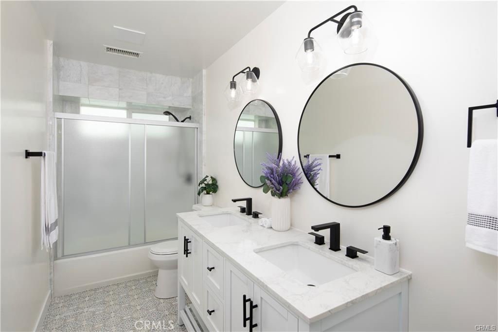 The remodeled kitchen is designed to impress with Luxuries designer granite countertops, JennAir range, Fisher & Paykel double drawer dishwasher, built-in wine fridge, generous cabinetry, and expansive prep space.