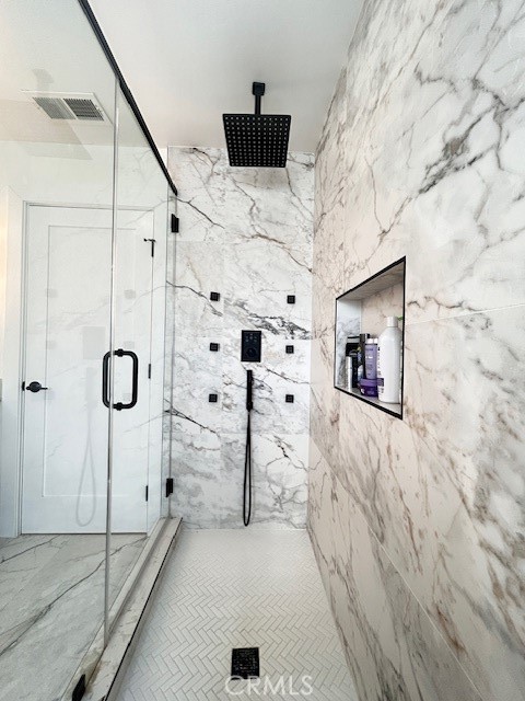 The upstairs primary suite offers privacy and comfort with a soaking tub, walk-in shower with multi-body sprayers, walk-in closet, and tasteful designer finishes. A full guest bath completes the upper level.