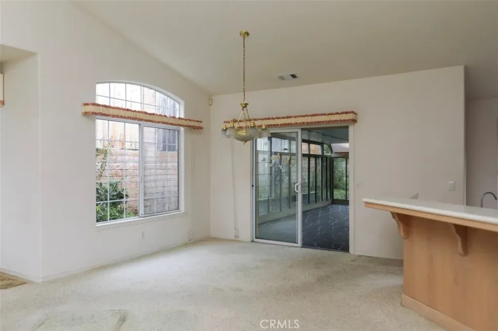Upon entering, you’ll immediately notice the vaulted ceilings and spacious living room featuring a cozy fireplace. To the left of the entry is a versatile bedroom with a front-facing window—ideal for a home office, den, or studio to suit your needs. From the living room, a sliding door opens to a beautiful sunroom with stone flooring, creating the perfect space for relaxing or entertaining year-round.