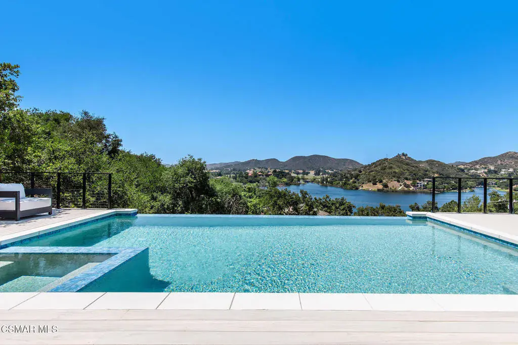 Spectacular New Build with Breathtaking Lake Views & Unmatched Luxury.Discover an architectural masterpiece designed for the ultimate luxury lifestyle, offering panoramic lake views, cutting-edge smart home technology, and resort-style amenities. Privately gated and meticulously crafted, this extraordinary estate spans 8,994 square feet across two stunning residences, with an additional 4,000 square feet of balconies, an infinity pool, and a private wellness retreat.The main house offers 8,007 square feet of impeccable design, featuring four bedrooms, four full bathrooms, and two half baths. Expansive open-concept living spaces flow seamlessly to the outdoors, enhanced by 4,000 square feet of balconies–2,000 of which are covered and framed by sleek Starphire glass railings. A Control 4 Smart Home System ensures effortless convenience, with WiFi-enabled technology throughout, from Emtek smart locks to top-of-the-line Wolf and Sub-Zero appliances.The gourmet chef’s kitchen is fully equipped with double ovens, double dishwashers, a Sub-Zero fridge drawer, and a full bar with ice maker–perfect for entertaining. Additional luxury features include a temperature-controlled 400-bottle wine cellar, a state-of-the-art home theater, and a dedicated office space. A private elevator allows for seamless access across all levels of the main residence.The guest house offers 987 square feet on the main level and an additional 800 square feet on the lower level. It includes one bedroom, one and a half baths, a full kitchen, and a private wellness center on the lower level–complete with a gym, sauna, steam shower, and full bath–making it ideal for guests or long-term stays.Outside, the estate becomes a true sanctuary. The infinity pool and hot tub overlook Lake Sherwood’s tranquil waters and are complemented by an outdoor shower, fire pit, and a full outdoor kitchen with built-in BBQ, fridge, sink, and ice maker. Four fireplaces throughout the property add warmth and ambiance, while lush landscaping enhances its natural beauty.With a five-car garage shared between both residences and a fire hydrant conveniently located at the driveway, every element of this home has been designed with luxury, safety, and lifestyle in mind.This is more than a home–it’s a private retreat, offering world-class amenities, breathtaking views, and unmatched craftsmanship in one of Southern California’s most prestigious communities.