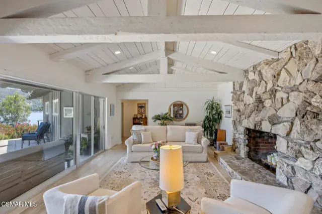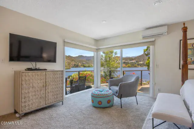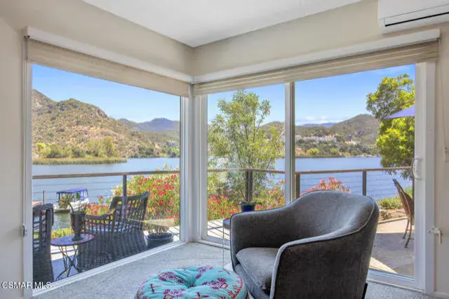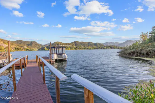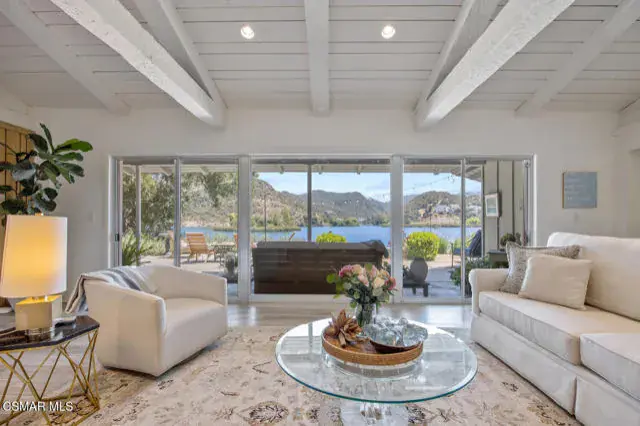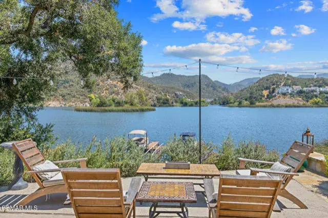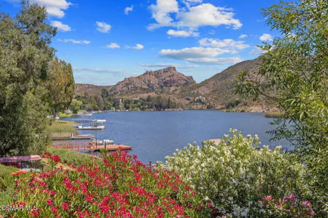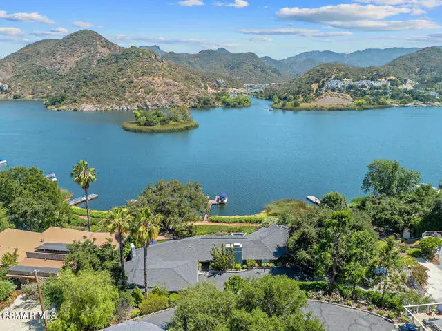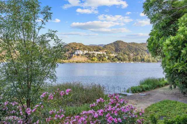 Experience vacation living every single day living at this lakefront home in prestigious Lake Sherwood. A home in this highly sought after location is rarely on the market, and this waterfront locale is arguably THE BEST SPOT on all of Lake Sherwood. Sitting out on the back patio watching the birds and the boats go by is the most relaxing experience and this view is a panoramic lake view right in the middle of the lake. You can see the water shimmering on the lake from almost all the rooms in the home and since the back of the home faces West, the angle of the sun at this home is ideal. At sunset, take a soak in the gorgeous stone infinity spa and life is darn good. This home comes with a private boat dock located right in front. The property features private oak trees and rose and lavender gardens that extend from the patio to the water. With three bedrooms and a spacious office, and two full bathrooms plus a powder bathroom, this ONE STORY home is a wonderful retreat. Bulit in 1954, much of this home has been updated, but it has retained it’s vintage charm. The primary bedroom is enormous with a large walk-in closet and floor to ceiling windows to enjoy the lake view at any time of day. The kitchen is a gallery style kitchen with a new induction stove, and the large walk-in pantry will delight all family members. There is also an indoor laundry room with a sink. One perk of this location is access to the private walkway in front of the lake front homes on the north side of the lake which is a magical place to take a morning walk. There is also a converted boat house for extra storage. Please note there is a carport for two cars and ample parking on the driveway but no garage.