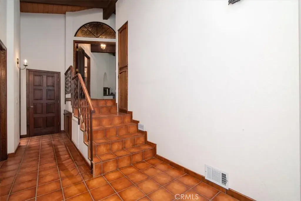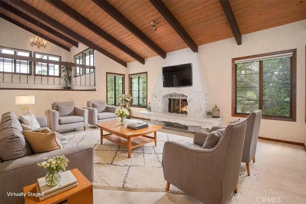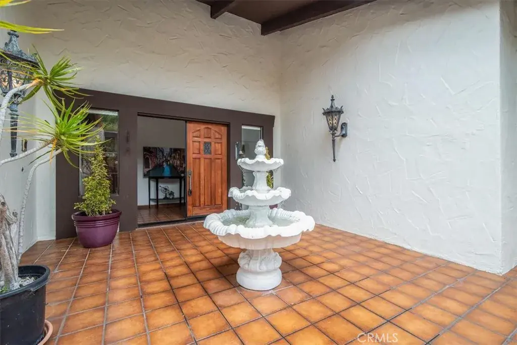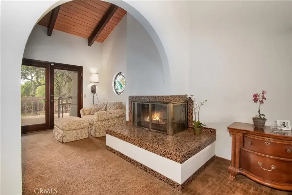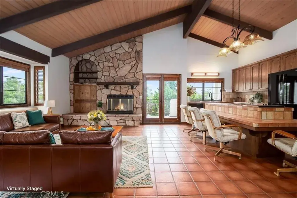 Nestled within a prestigious country club, 445 Firestone Way exudes the charm of a Mediterranean/Spanish home. Situated at the end of a tranquil cul-de-sac, this residence offers both privacy and elegance. The inviting entrance via the circular driveway, leading to a front patio with beautifully laid tiles and a serene fountain. Enter to discover cathedral ceilings adorned with exquisite wood beams. A graceful staircase guides you to the remarkable primary suite. This expansive retreat features a large bedroom with a cozy lounge area and fireplace. One bedroom is currently set up to use as an office. Enjoy stunning backyard views from one of the private balconies—ideal for quiet reflection or morning coffee. The suite includes two full bathrooms: one with a tranquil soaking tub and expansive walk-in closet, the other with a sleek, glass-enclosed shower. The spacious living room boasts high wooden beamed ceilings and picturesque windows and an inviting abundant natural light. A formal dining area overlooks the living room, perfect for entertaining guests. The chef’s dream kitchen features wood beam ceilings and a generous island adjacent, the family room offers a cozy haven with a rock fireplace and balcony. A fully-equipped bar stands ready for crafting cocktails or enjoying an evening drink. 445 Firestone Way is more than a home; it is a lifestyle, offering a unique living experience with its elegant design, luxurious amenities, and serene location.