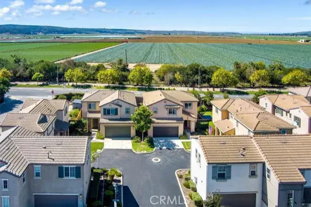 Former Plan 1 model home in The Courtyards at Briar Creek, this 3-bedroom, 2.5-bath residence is perfectly positioned on a quiet cul-de-sac, offering both privacy and a sense of community. The open, light-filled floor plan flows seamlessly from living to dining to kitchen, creating a welcoming atmosphere for both relaxed evenings and lively gatherings. The kitchen features granite countertops, stainless steel appliances, and a peninsula that connects beautifully with the main living area. Upstairs, the primary suite includes a walk-in closet and dual vanity bath, with two additional bedrooms and a full bath nearby. The backyard combines hardscaping and low-maintenance landscaping, featuring a natural stone fire pit area that makes the space ideal for entertaining, outdoor dining, or unwinding under the stars. Located just 10 minutes from Vandenberg Space Force Base and within easy reach of Santa Barbara, Solvang, and local wine country, this home also offers access to parks, walking trails, farmer’s markets, and events like the Lompoc Valley Flower Festival – delivering a lifestyle that feels both connected and refreshingly serene.