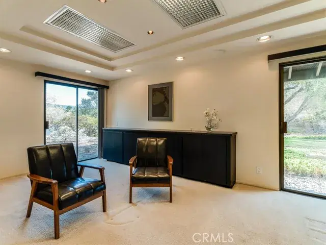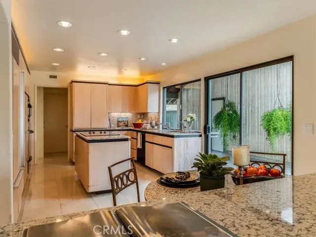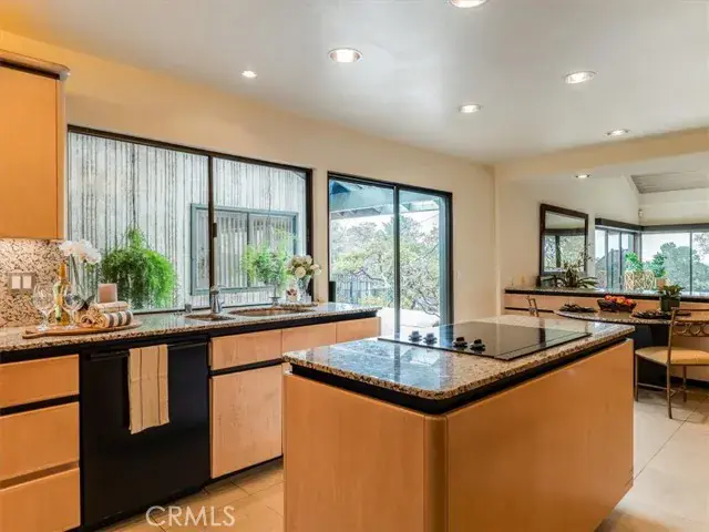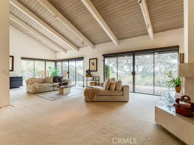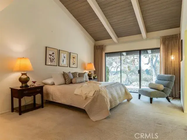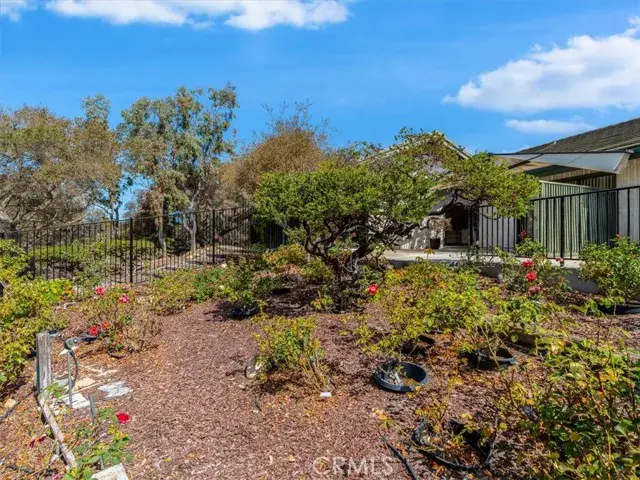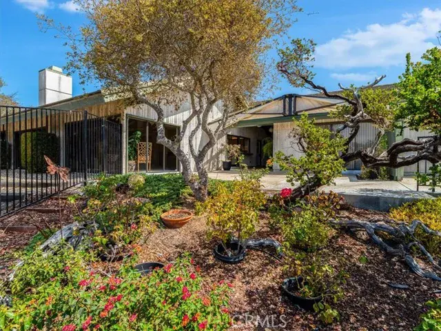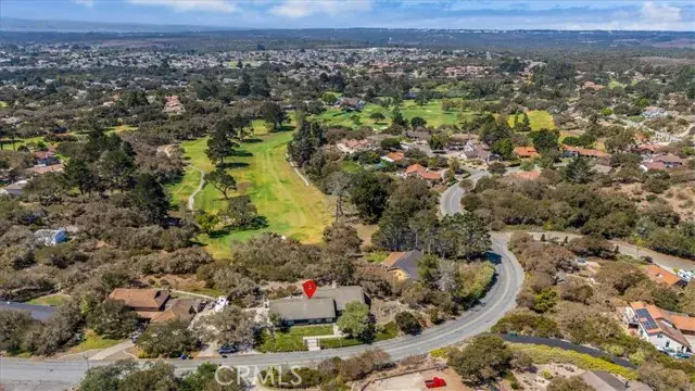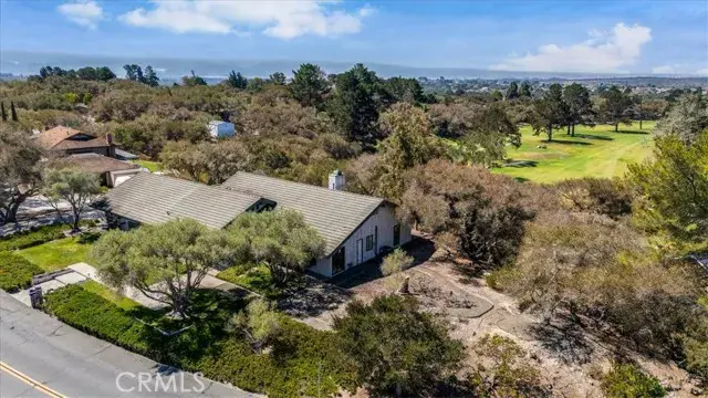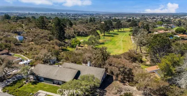 Tucked deep within the desirable Lompoc Country Club neighborhood this expansive 0.59 acre lot is perched atop a quiet ridge with commanding vistas. With 3 bedrooms and 3 bathrooms, this generous 2,432 square-foot residence is a timeless blend of classic architecture and breathtaking natural surroundings. Step inside to find sun-drenched interiors, an inviting open floor plan, and spaces that strike a perfect balance between lively entertaining and quiet retreat. The living room features a dramatic fireplace focal point and expansive views of the gardens and golf course. Glass doors open to a series of patios and outdoor vignettes, ideal for morning coffee or evening gatherings. The spacious, light-filled kitchen is outfitted with custom cabinetry, a built-in bar and breakfast area, and direct access to both the formal dining room and a covered patio — making indoor/outdoor living effortless. The primary suite is a tranquil retreat, offering sweeping views, abundant natural light, and a deep sense of privacy. The en-suite bathroom with dedicated vanity area and walk-in closet complete this luxurious oasis. The second bedroom offers flexibility to restore its original configuration as two separate rooms — perfect for a guest suite, home office, or den. The third bedroom is privately situated in its own wing of the home, with front garden views. A two car garage includes a fully finished workshop or office, along with ample built-in cabinetry for storage and organization. Outside, the landscaped grounds are a natural extension of the warm and intentional design, featuring covered patios, an heirloom rose garden, native plants, mature trees, and breathtaking golf course vistas.