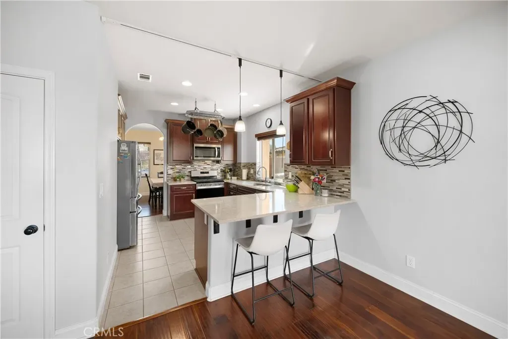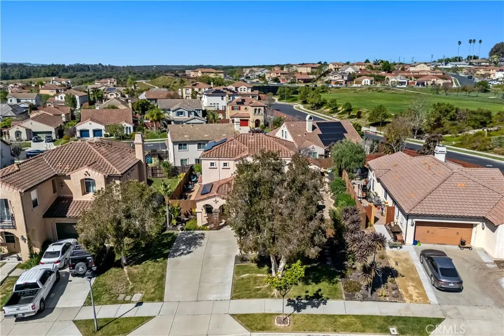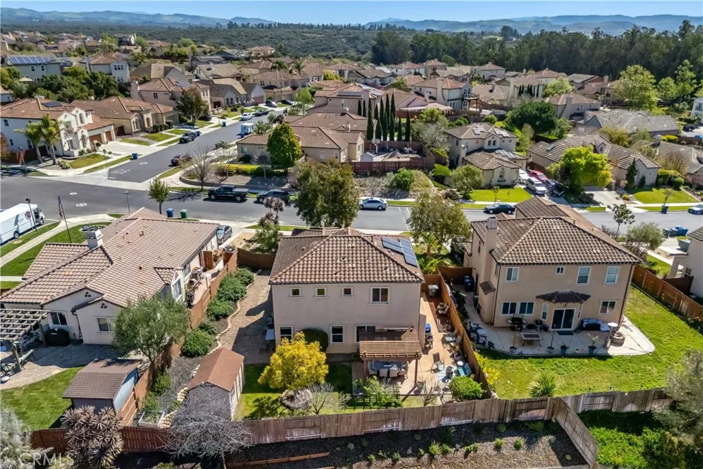 Mediterranean-inspired residence in the highly desirable Providence Landing community. Thoughtfully designed to offer a refined blend of comfort, flexibility, and style, this property is ideally positioned to embrace the Central Coast lifestyle, with convenient access to surfing at Jalama Beach, hiking at La Purisima Mission State Historic Park, golf at the Mission Club, and renowned wine tasting in the Santa Ynez Valley. Situated on an 7,405 square foot lot, the residence offers 2,320 square feet of living space, featuring four bedrooms—including primary suites on both levels—and four bathrooms, ideal for multi-generational living and guests. The inviting floor plan balances formal and casual spaces, enhanced by engineered wood flooring throughout much of the main level and an abundance of natural light. The living room is centered around a gas fireplace with a pre-cast concrete surround, creating a warm and welcoming setting, while the formal dining room is highlighted by a hanging fixture, ideal for gathering around the table with friends. The comfortable family room features built-in media cabinetry and opens to the rear yard, creating a seamless indoor-outdoor connection. Perfect for creating your favorite recipes, the gourmet kitchen showcases quartz countertops with a mosaic backsplash, a ceiling-mounted pot rack, and a package of quality appliances including a Whirlpool five-burner gas range, KitchenAid dishwasher, Whirlpool microwave, and LG smart refrigerator. A breakfast bar with attractive pendant lighting provides a casual dining space. The private main level primary suite offers a walk-in closet and a luxe bath with soaking tub, tiled shower, and dual sink vanity with a mosaic liner detail. The upper level includes a second primary suite with a walk-in closet and bathroom with soaking tub, tiled shower, and dual sink vanity, along with two additional secondary bedrooms conveniently located adjacent a well-appointed full bath. Additional highlights include window coverings, a laundry room with Maytag washer/dryer, upper and lower cabinetry, and a sink, as well as a two-car garage with 220-volt service and an EV charger. The rear yard features a stamped concrete patio, portico, lush lawn, fruit trees, flagstone walkway, and a garden shed, offering an amazing setting for weekend BBQs and relaxation. Community amenities include a clubhouse, pool and spa, tennis courts, multi-use sports fields, playgrounds, walking paths and fitness stations.