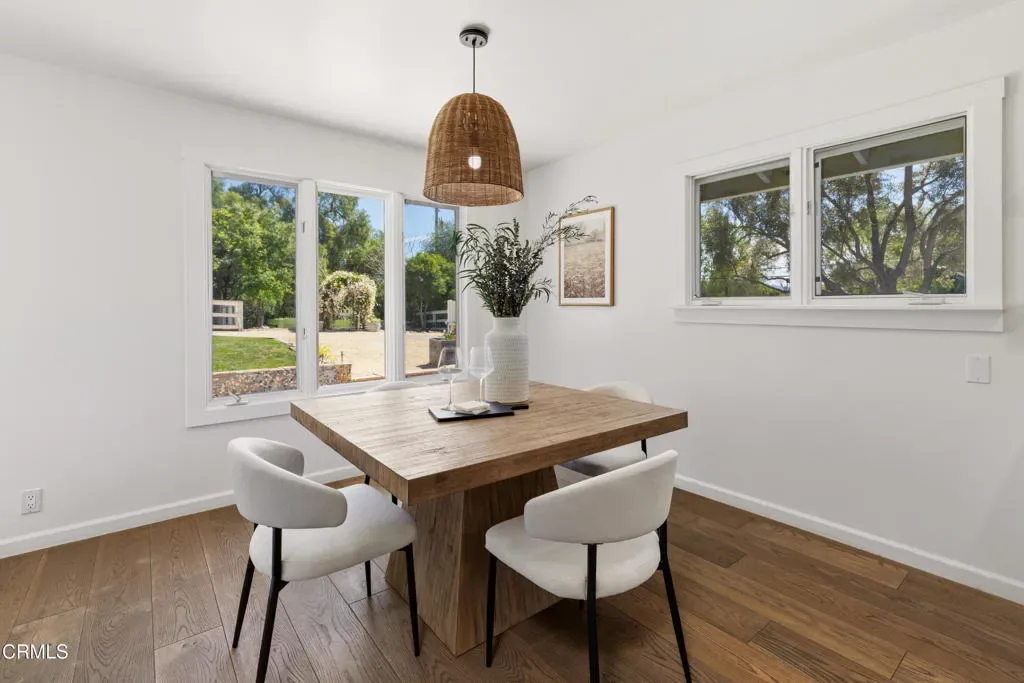 Fully remodeled wine country retreat with SYV-meets-Provence inspired charm, beautifully appointed on an oversized 0.52+/-acre lot with stunning landscaping and thoughtfully designed outdoor living spaces. Lush lawns, mature pepper trees, olives, citrus, lavender & grasses, a chicken coop, and raised garden beds create a private garden setting, while the dedicated outdoor dining area with a pizza oven and oak pit Santa Maria-style BBQ is perfect for entertaining and enjoying the al fresco wine country lifestyle.A gated stone path entry leads to the front door and sets the tone for this simple, clean and elegant space. Wood floors throughout the main living areas of the home create a seamless flow and expansive feel in the cottage, and the well-designed cook’s kitchen features ample storage, stainless steel appliances, a cozy dining area, and bar seating. Carrera marble accents tie the home together and are featured in the kitchen, laundry, and bathrooms. The 1,244 SqFt home features three bedrooms, 1.5 bathrooms, it is intimate & timeless, and the perfect Santa Ynez Valley full-time residence or weekend escape.The detached garage structure currently features a gym and could be reimagined as office space, a studio, or a pool house. In addition, the current owners have fully approved and permitted, ready-to-build drawings from bespoke architectural firm PLACE, with interior design plans from Santa Barbara-based MN Studio Interiors, to create a family compound with pool cabana. Just three blocks from downtown Los Olivos, with vineyard walks on one side and world class wine and food on the other, in the heart of wine country. Come enjoy what feels like a European holiday, just two hours north of Los Angeles.