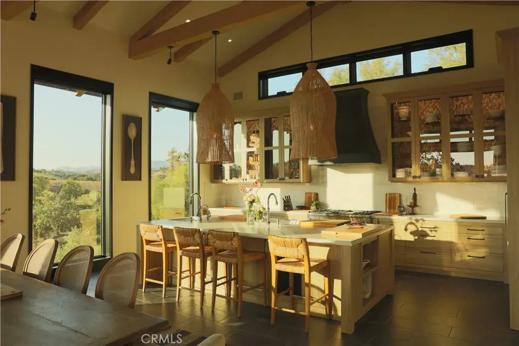Welcome to this 5.5-acre vineyard estate with six bedroom home in the winery destination of Los Olivos. This fully furnished home features a chef’s kitchen with a great room design of adjacent dining and family rooms leading to the outdoor areas. There are two primary suites, one on the ground floor and the other on the second floor featuring adjoining bathrooms. Easy access to the Santa Ynez wine region.