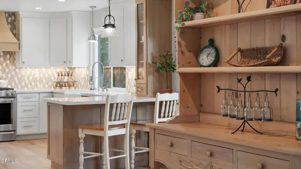 Set along iconic Grand Avenue in the heart of downtown Los Olivos, this charming 3 bedroom, 2.5 bath residence blends timeless cottage character with effortless wine-country living. A line of boxwood frames the front lawn, leading to the front door and creating a welcoming arrival amid lush lawns and mature trees in both the front and backyard.Inside, a beautifully remodeled kitchen anchors the main level, opening through French doors to the backyard for seamless indoor-outdoor living. The formal dining room offers an inviting space for gatherings, while all three bedrooms are thoughtfully located upstairs, creating a quiet and private living level. The primary suite provides a comfortable retreat with an en-suite bath, and a charming upstairs landing offers an ideal reading nook, sitting area, or flexible bonus space. A dedicated laundry room with generous counter space adds everyday convenience.Outdoors, the private backyard is framed by green lawns and mature trees, offering space to relax, garden, or entertain, along with a convenient storage shed. A spacious two-car garage completes the property, all just moments from Los Olivos’ tasting rooms, boutiques, and restaurants.