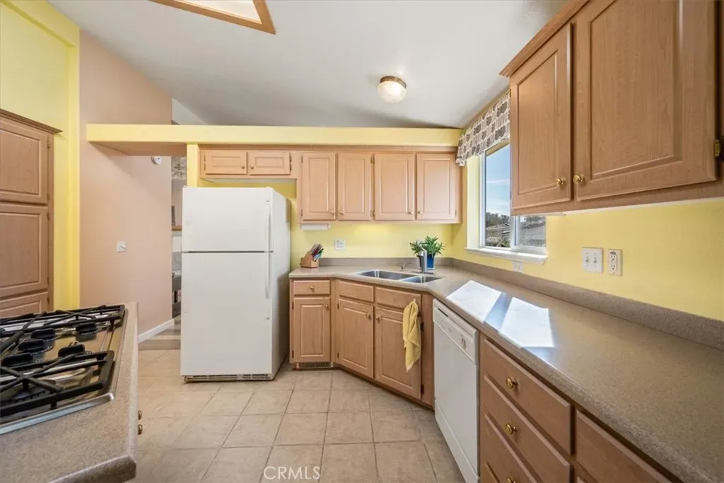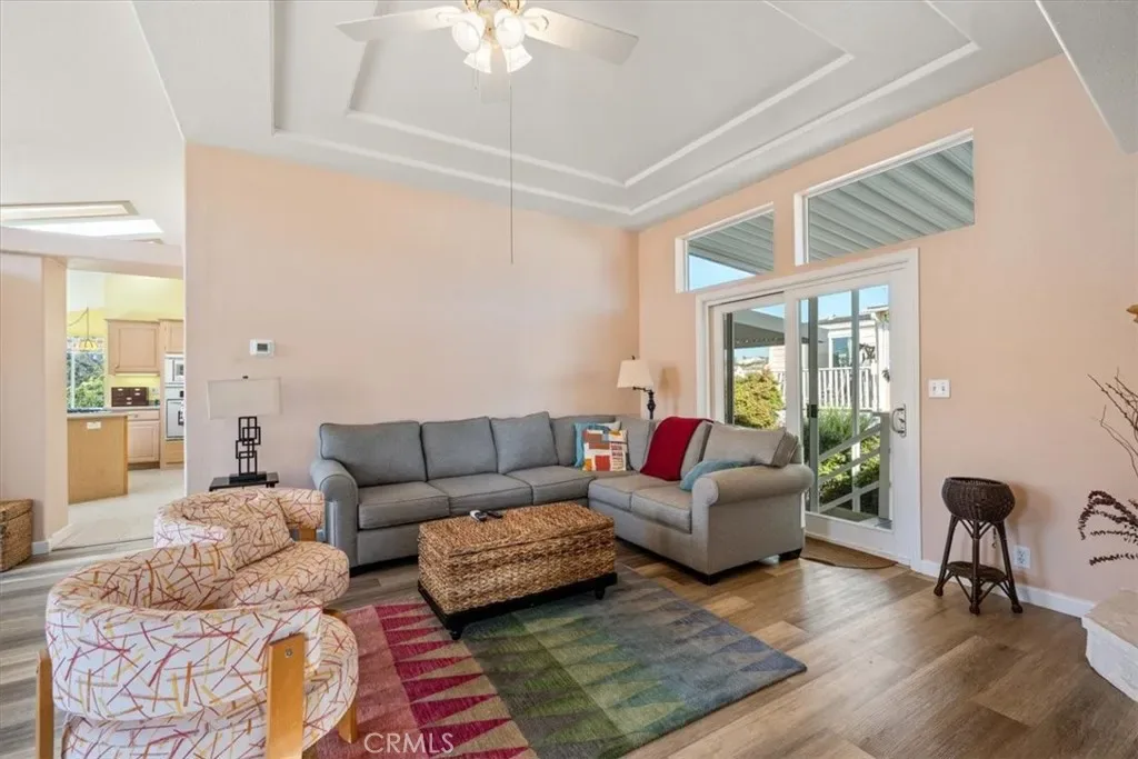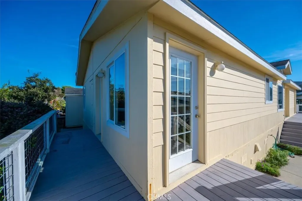 This Spacious and Clean 3-bedroom, 2-bath home is in a highly sought after location in the 55+ Morro Shores community backs up to open space with beautiful mountain views. The home features vaulted ceilings, skylights, abundant natural light, LVT flooring, ample storage and a cozy fireplace. The kitchen includes an island with gas cooktop, breakfast nook, solid surface counters, pull-out cabinetry, KitchenAid appliances, wet bar sink, and ample storage. On one end of the home you will find the primary suite with private entrance and walk in closet . At the back of the house there are two additional bedrooms and full bath. Additional features include dual pane windows, a separate laundry room, newer washer, dryer, furnace, and water heater. Enjoy the large wraparound deck, plus a small garden area, storage shed, and oversized covered parking.