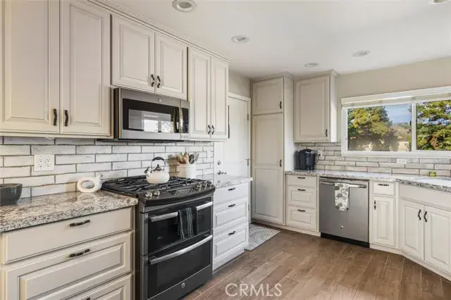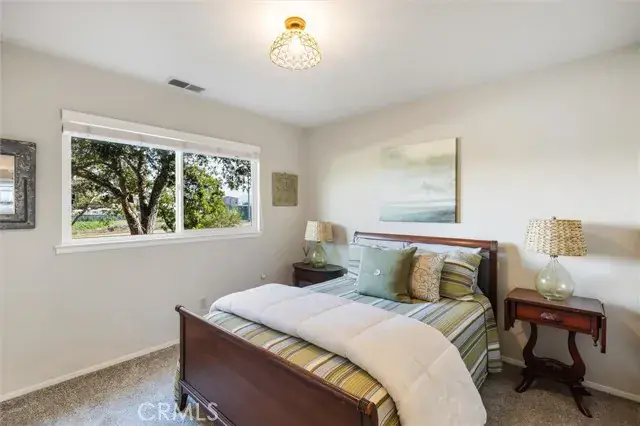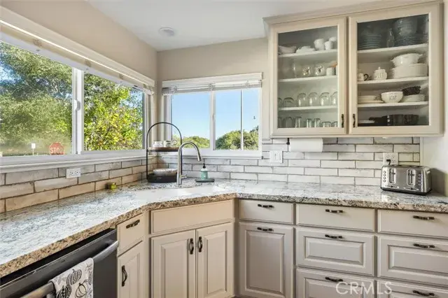 Beautiful single level home in the desirable Bayridge Estates neighborhood of Los Osos. This turnkey three-bedroom, two bath updated home checks all the boxes! Some of the upgrades include fluted glass double entry doors; wood look tile flooring in living areas; newer carpeting in bedrooms; remodeled kitchen with custom cabinetry, soft close cabinet doors/drawers, granite countertops and built-in GE Profile Slate appliances. Refrigerator is included as cabinets were built to spec and gas range has a double oven; canned lighting in kitchen and hallway; volume ceiling in living room with gas log fireplace; tiled bathtub surrounds and granite countertops on bathroom vanities; upgraded interior doors and hardware; lots of light with dual pane windows and sliding glass doors; 2.5″ wood blinds throughout; private courtyard patio, two potting sheds for the gardening enthusiast (or use as additional storage) and a large backyard area. All of this on a 10,320 sf corner lot AND a coveted 3 car attached garage with bonus attic storage! Los Osos is a wonderful community and this location has great walkability to the grocery store, post office, hardware store, bakery and restaurants. Make this your next home and experience everything Los Osos has to offer!