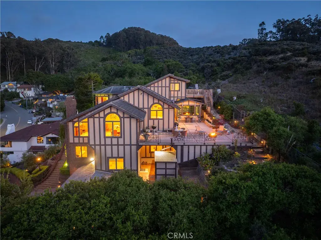Welcome to a California estate where nature, craftsmanship, and serenity intertwine. This exceptionally private home is whatever your heart desires — light and bright by day, with sweeping views from every window as treetops sway in the ocean breeze. At night it transforms into a warm romantic retreat, where twinkling stars above and the shimmering lights of Estero Bay below transport you to another world.