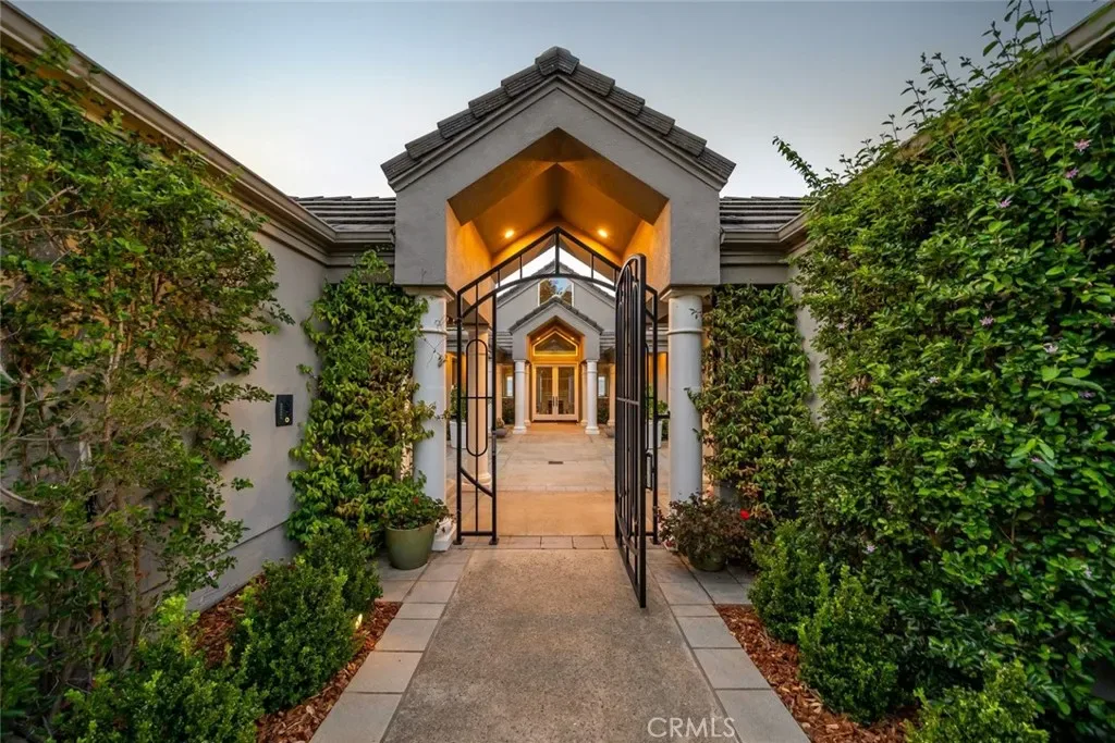 A semi-circular driveway and lush, professionally designed landscaping, building anticipation as you arrive at a striking front courtyard. Pillared posts, exquisite concrete detailing, and dramatic lighting create a resort-level gathering space.
