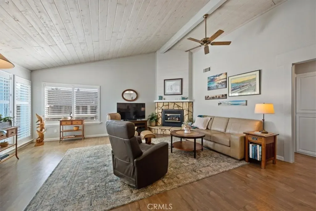 Set along the scenic El Moro bicycle path in the heart of Baywood, with views of Hollister Peak, this beautifully maintained single-level three-bedroom, two-bath home blends comfort, charm, and effortless coastal living. The open floor plan showcases vaulted wood ceilings, a cozy gas fireplace, and luxury vinyl flooring, creating a bright and welcoming living space.