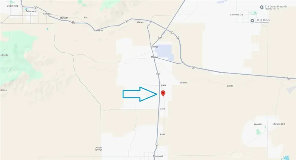 For sale is an 18+- acre lot, with a total of 72+- acres available, between Highway 14 and Sierra Highway. Has a beautiful view of Mojave and city lights. Access is via Kemper Rd and Trotter Ave. Zoned as exclusive agriculture. Can build a home on each of the lots. There is an electricity line on the lot adjacent to the north of these 4 parcels. Buyer to verify water. The price is for one of the lots. Buy one or all.