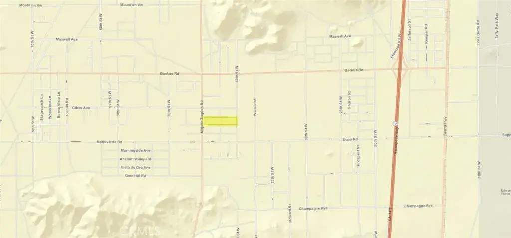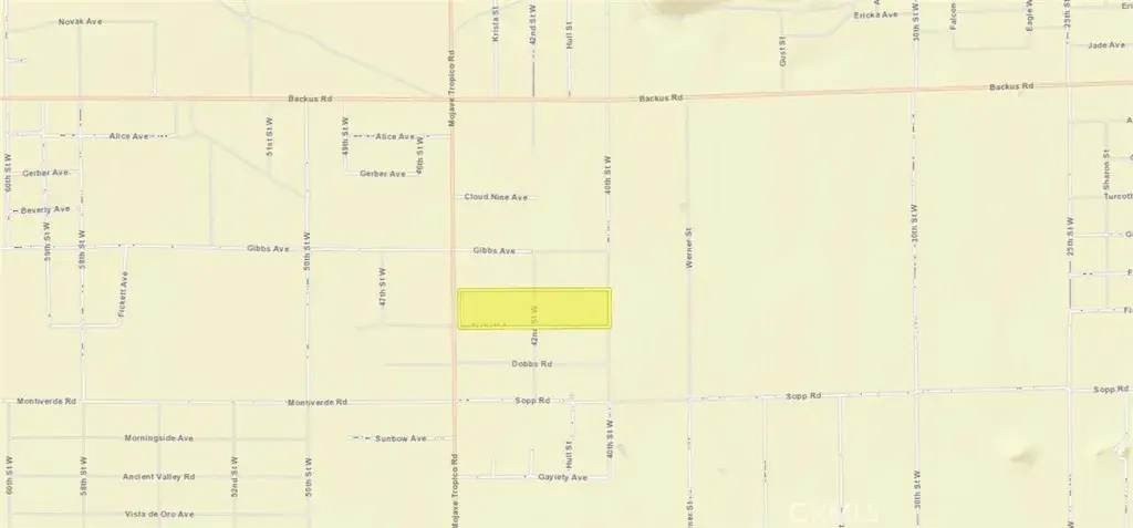 Great opportunity to build your Private Ranch or Custom Home on Acreage or develop a small community of Mobile/Manufactured Homes. Paved road frontage on Mojave-Tropico Rd with electrical power lines in the street. 41 acres of mostly flat land with wonderful views of the valley and the mountains. Custom Homes and Mobile/Manufactured Homes are in the area. Buyer to verify all property uses and utilities.