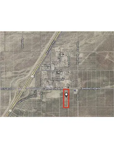 10 acres of level land on the south side of California City Blvd just east for the 14 freeway with on and off ramps in both directions. California City Blvd is a paved two lane primary artery between Edwards AFB, California City and the 14 freeway. This property is ideally situated to take advantage of this high traffic location. The property is zoned for multifamily residential or other commercial uses. Overhead power on the north side of the Blvd. Public water is close by. Not to far to Red Rock Canyon, Lake Isabella and MT Whitney.