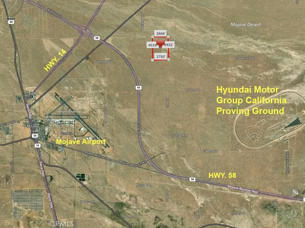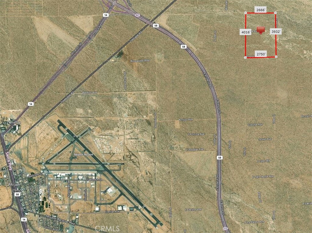 The listing price is for 40% share of 248+/- Acres of Vacant Industrial Land Zoned M-3 (Heavy Industrial) located Northeast of State Hwy. 58 and Hwy. 14 and Northwest of Hyundai Motor Group California Proving Ground, Mojave Air and Spaceport is to the Southwest. It has 2750′ Frontage on Rosewood Blvd. and 3932′ frontage on 20th St., Snake Ave goes through the property. Hwy. 14 is less than 2 miles away which gives you easy access to Rosamond, Lancaster, and Palmdale. Ideal for Cannabis, solar farming, truck stop, etc…