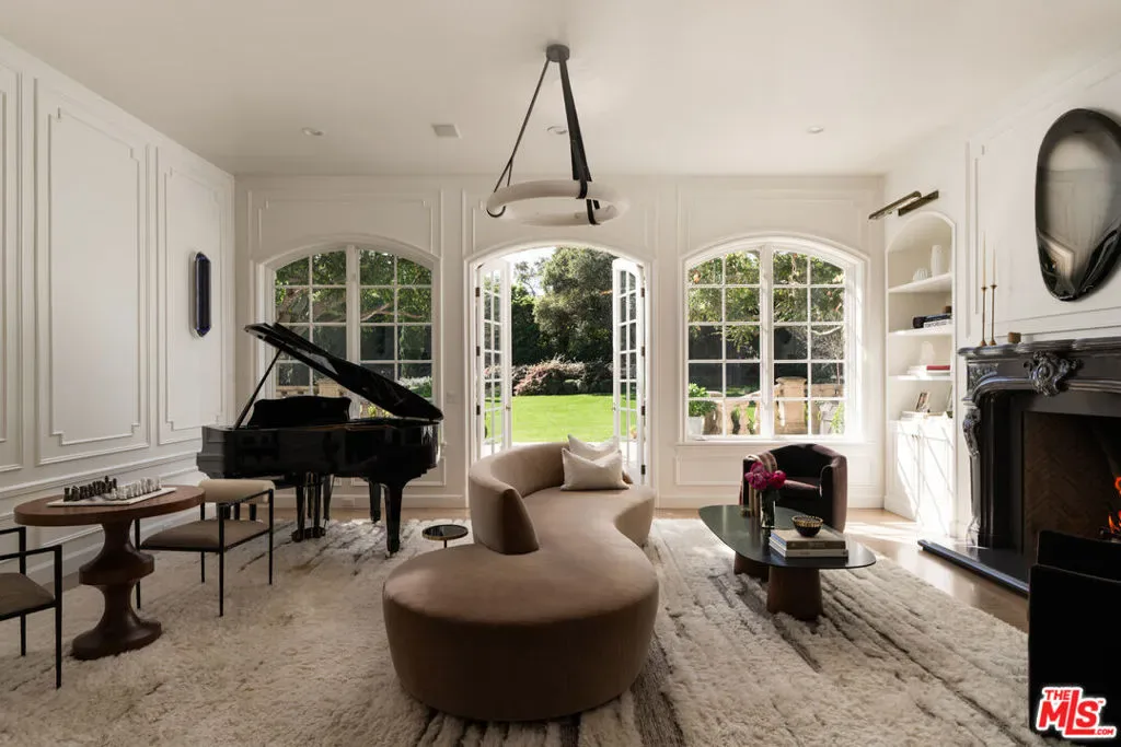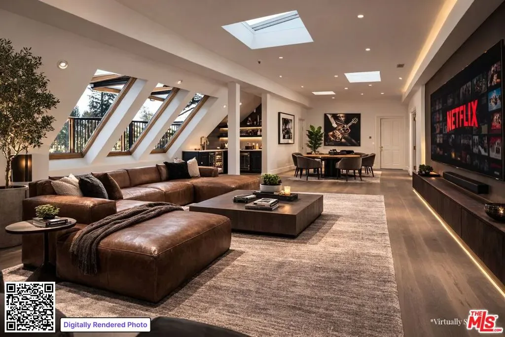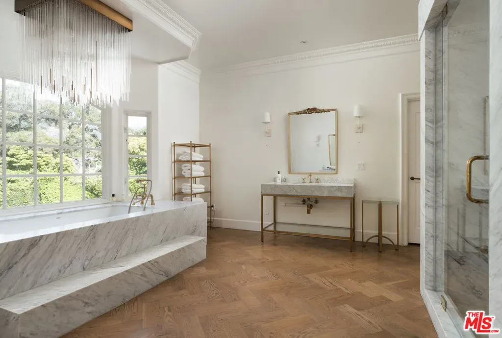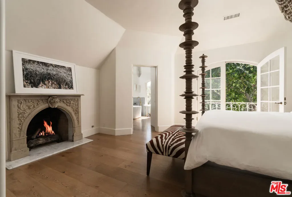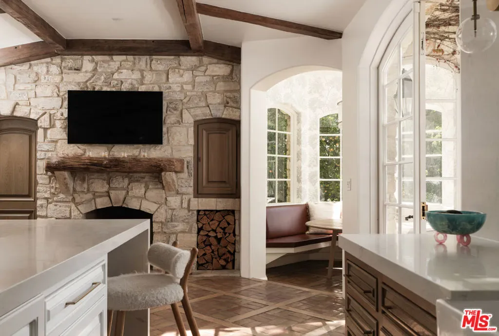 Moments from Montecito’s Upper Village, return to your own private fairytale estate. Tucked along a charming lane in a coveted location, the property offers the rare balance of convenience and seclusion. The residence is defined by a stone exterior, slate rooflines, soaring cathedral ceilings, custom millwork, and multiple romantic fireplaces. In the kitchen, hand-hewn beams reclaimed from a 300-year-old European barn bring warmth and quiet character. 5 bedroom suites are thoughtfully arranged on a single level, while a top-floor media lounge with full kitchen & bath creates an ideal retreat for guests or relaxed entertaining. Across 1.49 gated acres, the grounds feature mature elm trees, lawns, converted barn, & a bocce court, along with approved plans for a future pool & cabana.
