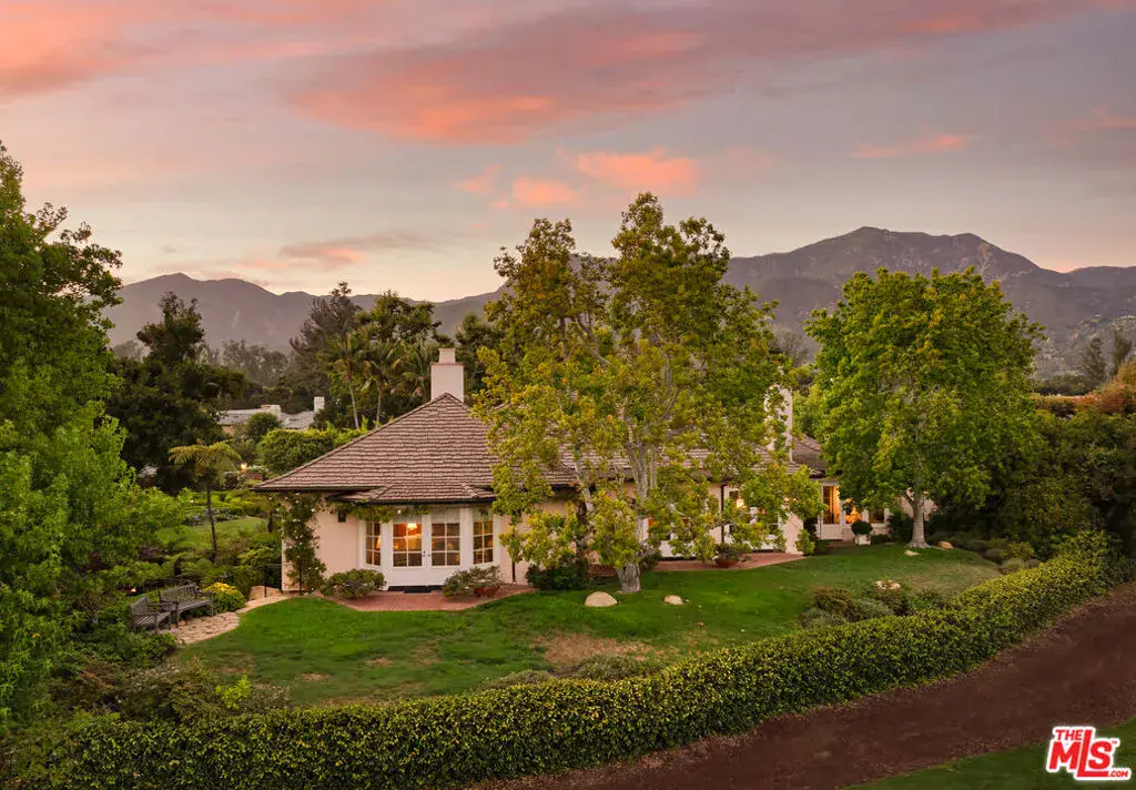 Tucked within the guarded gates of Montecito’s prestigious Birnam Wood enclave, this timeless residence enjoys one of the community’s most desirable locationsjust moments from the Birnam Wood Golf Club and surrounded by natural beauty. A separate one-bedroom, one-bath guest cottage with its own entrance offers private accommodations for visitors or extended family, complementing the main residence with comfort and versatility. The home’s grounds evoke the charm of an English garden, with mature oaks, blooming roses, fruit trees, trimmed hedges, and other flora. Multiple seating areas create a serene, park-like ambiance, while sweeping views of the lake and Santa Ynez Mountains provide a dramatic backdrop. Classic details such as beautiful crown molding and luxuriously stained wood paneling create an air of Old-World sophistication within the residence. The living room features a cathedral ceiling, custom built-ins, and rich wood tones, while an adjoining enclosed porch bathes in sunlight and overlooks the golf course and its lake. A companion formal sitting room offers the same captivating views. The dramatic dining room invites formal repasts with its soaring ceiling, exquisite fabric-lined walls, a statement chandelier, and floor-to-ceiling windows. French doors open to a garden-view terrace. Nearby, the kitchen blends charisma and functionality with hand-stenciled cabinetry and a combination prep-and-serve island perfect for casual meals and relaxed conversation with the chef. A whimsical chandelier and custom range hood mural add a touch of personality, while large windows invite natural light and garden views. A large office provides a quiet retreat with its fireplace, built-in bookshelves, and cathedral ceilingan ideal space for working from home or enjoying privacy. The grand primary suite, a peaceful sanctuary, hosts French doors opening to the gardens, an exceptionally spacious closet, and a lavish bathroom with a large soaking tub swathed in Italian marble. The suite’s built-in desk adds function and flexibility, creating a quiet space for reading or reflection. A spacious three-car garage adds convenience. This distinctive property pairs gracious indoor living with extraordinary outdoor spaces in one of Montecito’s most exclusive enclaves, all while convenient to the singular amenities this special community offers.