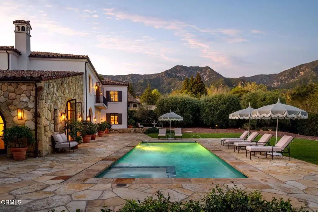 Private Montecito SanctuarySet against a dramatic mountain backdrop in coveted Montecito, this light-filled Mediterranean estate evokes the timeless romance of the Tuscan countryside. Surrounded by mature olive trees and orchards, the 5-bedroom, 61/2-bath residence offers privacy, scale, and exceptional architectural pedigree.Originally designed by renowned architect Don Nulty and extensively re-envisioned in 2018 by celebrated designer Steve Hermann, the home blends classic Mediterranean elegance with sophisticated modern design. Interiors feature chevron French oak floors, a custom-cut marble foyer, barrel-vaulted ceilings, three fireplaces, and a chef’s kitchen with ILVE Italian range, Miele appliances, Kalista fixtures, and Savant whole-home audio.Luxurious bathrooms include Kelly Wearstler and Ann Sacks mosaic marble with Samuel Heath fixtures. Outdoors, a pool and multiple patios–including a covered portico with fireplace–create an ideal setting for effortless Montecito living.