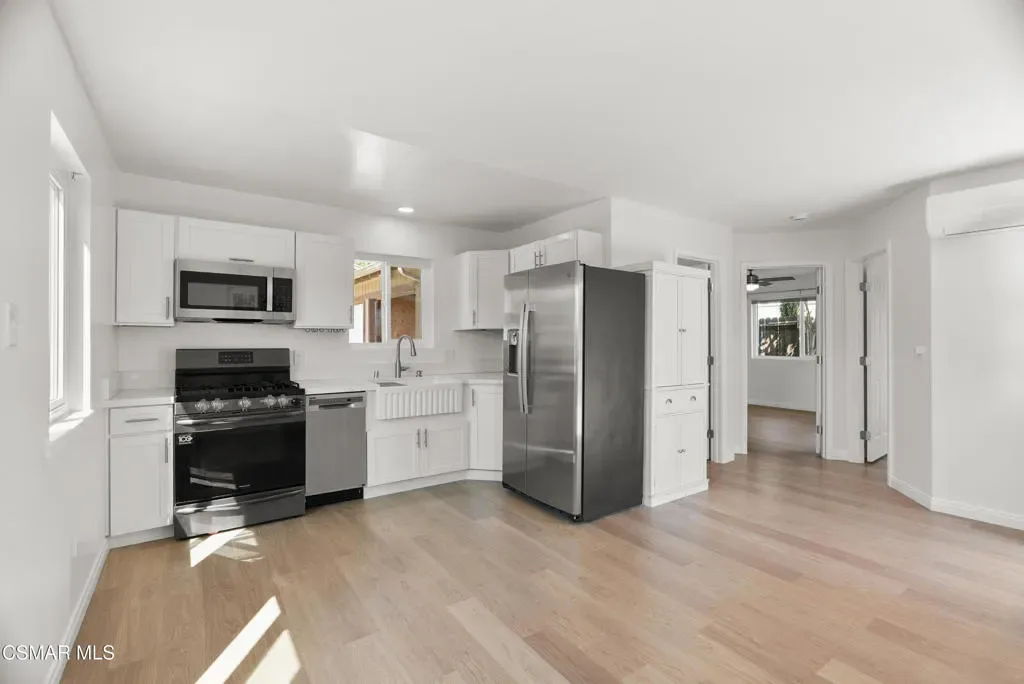 Beautifully remodeled 2-bedroom, 1-bath residence in the desirable community of Moorpark. This thoughtfully updated home features a bright and open layout with modern finishes throughout. The upgraded kitchen offers sleek cabinetry, updated countertops, and contemporary appliances, flowing seamlessly into the main living area. Both bedrooms are well-proportioned with ample natural light, and the remodeled bathroom showcases clean, modern design. Conveniently located near local shopping, dining, parks, and easy freeway access. Enjoy a large private front patio, ideal for outdoor relaxation or entertaining, along with the convenience of a 1-car garage. A turnkey lease opportunity offering comfort, style, and convenience.