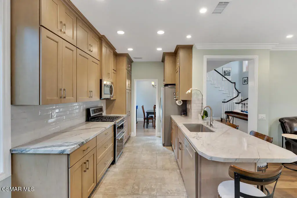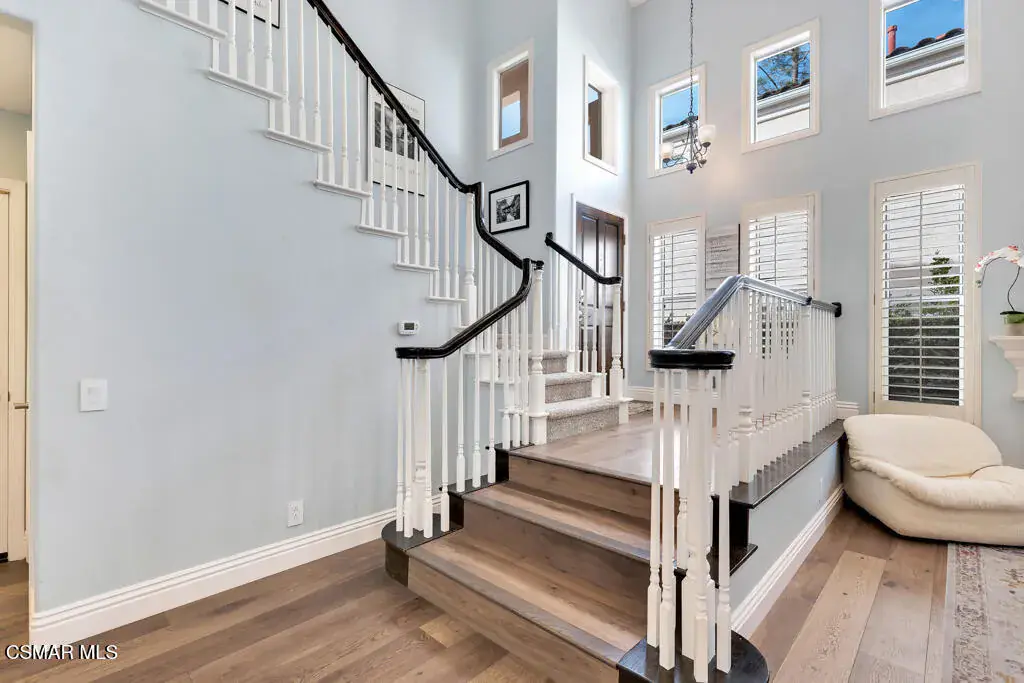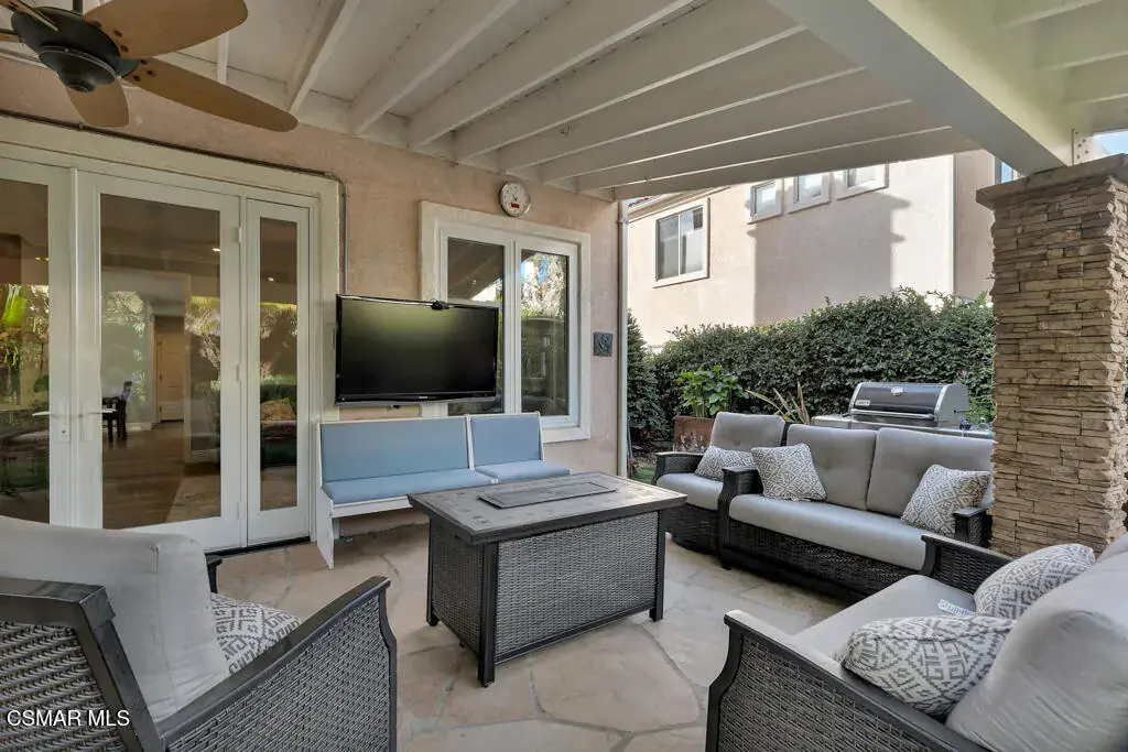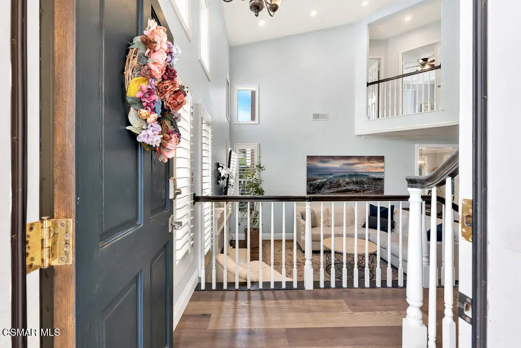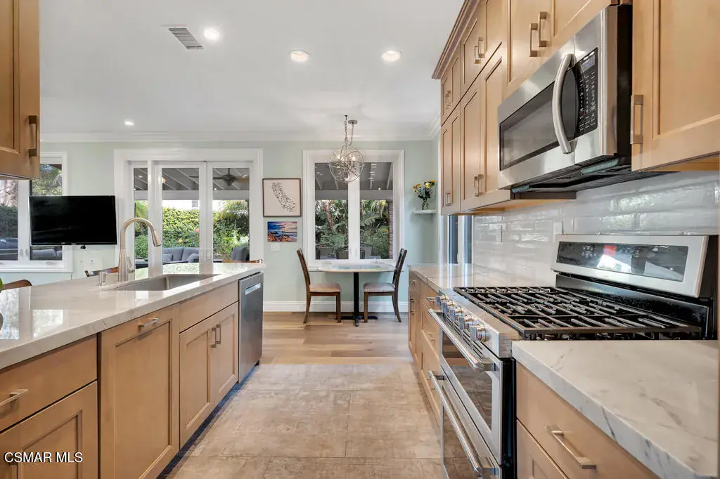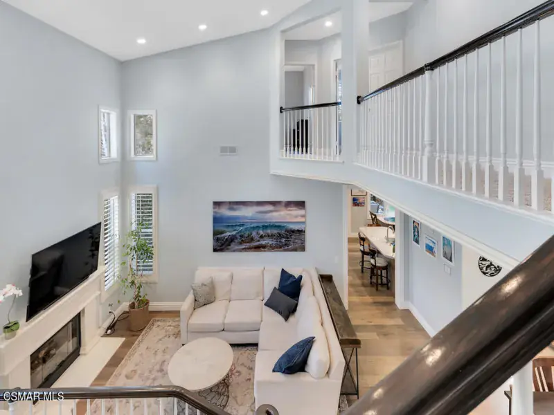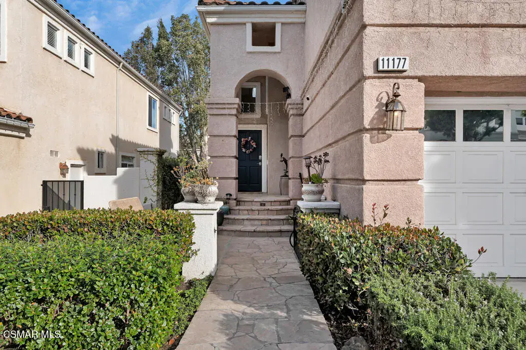 Welcome to 11177 Terraceridge Road, a beautifully upgraded 4-bedroom, 2.5-bathroom home situated on a terrific street in the highly sought-after Belmont community of Moorpark. Stepping inside, you are greeted by over 2,100 sq ft of light-filled living space, soaring ceilings, and an open, inviting floor plan. Thoughtfully remodeled with extensive upgrades throughout, this home blends modern design, expanded functionality, and warm, comfortable living.The downstairs living areas showcase upgraded hardwood flooring, recessed lighting in all main rooms, and a spacious living room that sits adjacent to the formal dining room–offering ample entertaining options. A convenient half bath is also located on the first floor.The fully remodeled kitchen is a standout, featuring expanded ceiling height for additional cabinet space, widened kitchen dimensions, a redesigned island for improved flow. Finishes include luxurious quartzite counters, warm-tone cabinetry, porcelain tile flooring and updated appliances. The kitchen opens to the family room, creating a wonderful gathering space. Large updated double-pane casement windows throughout the downstairs bring in abundant natural light and provide a seamless connection to the outdoors.Upstairs, all flooring has been updated with luxury vinyl plank floors and new carpet throughout the other spaces. The spacious primary suite features luxury vinyl flooring and a peaceful view of the backyard. The en-suite bathroom offers double vanities, a separate water closet, and a walk-in closet. Three additional bedrooms, another full bath with double vanity, and an upstairs laundry room complete the second level.Outside, enjoy your private oasis – the stunning outdoor room features an enclosed cover, ceiling fan, and beautiful stonework–perfect for year-round entertaining. Beyond your patio you will find all other areas fully landscaped and lush.This home has been maintained beautifully, the HVAC has been replaced, paid fiber-optic internet has been pulled all the way to the primary bedroom for exceptional speed and connectivity and updated hardware throughout. The home is also equipped with exterior gimbal-activated, solar-powered, WiFi-based security cameras–no wiring required.Just down the street, the community pool provides a perfect spot to unwind as well. Located close to dining, groceries, shopping, and award-winning schools, this is your chance to own this beautifully updated home!