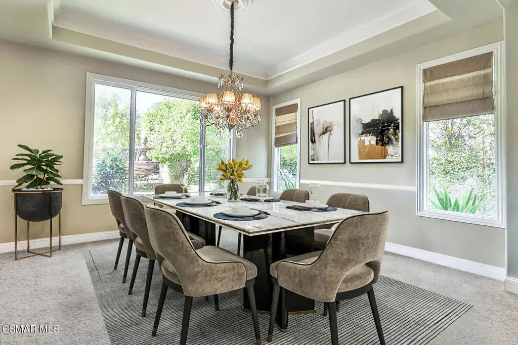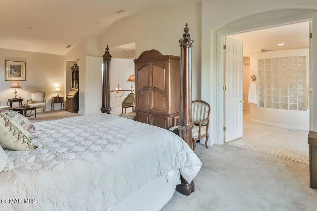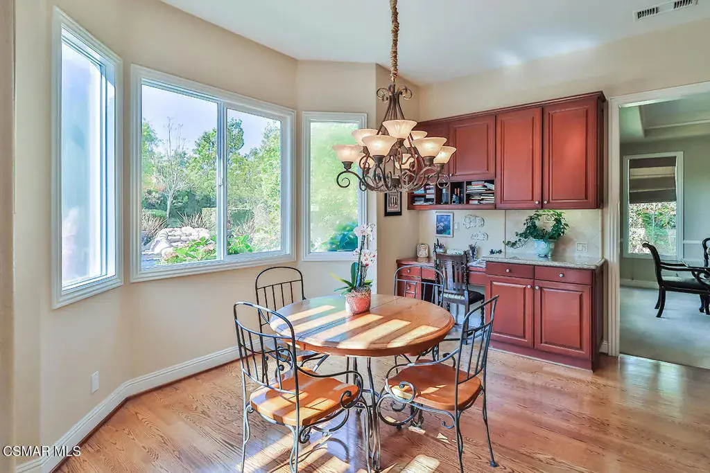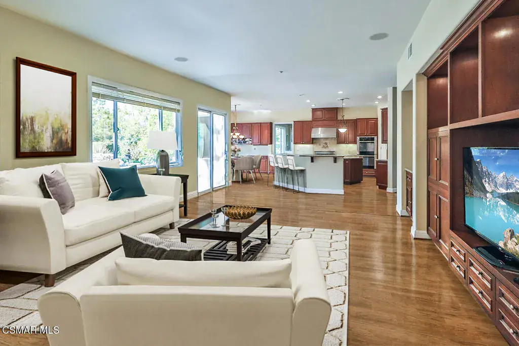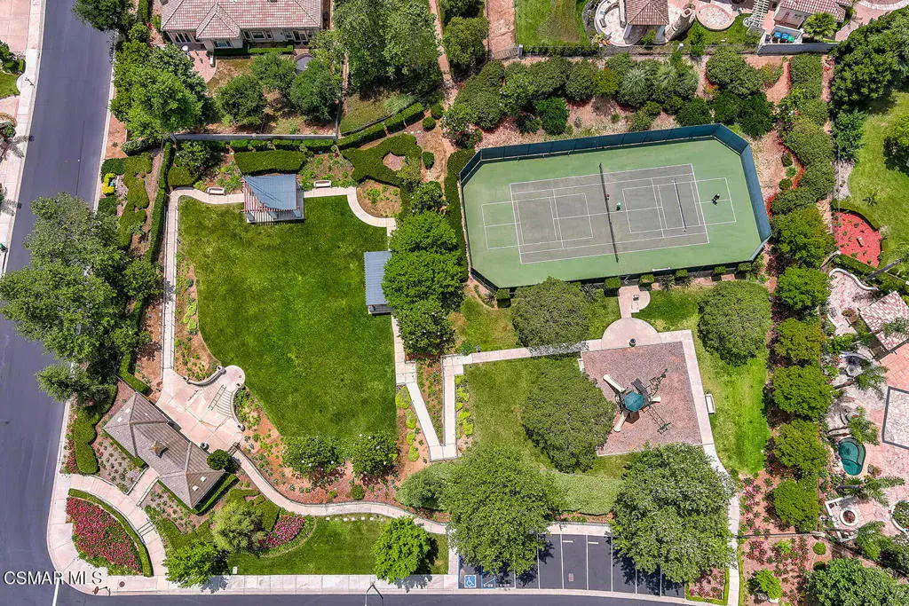 Welcome to your dream home nestled in the prestigious gated community of the Moorpark Country Club Estates–a perfect fusion of timeless elegance, resort-style amenities, and luxury. This stunning 5-bedroom, 6-bathroom estate offers a lifestyle of comfort, sophistication, and unforgettable entertaining, all set against the serene backdrop of rolling hills and meticulously landscaped grounds.From the moment you step into the grand foyer, you’ll be captivated by soaring cathedral ceilings, marble floors, and a sweeping staircase that sets the tone for the rest of the home. The formal living and dining rooms are beautifully appointed with breathtaking views of the lush backyard–ideal for both intimate dinners and festive gatherings.The heart of the home is the chef’s kitchen, featuring top-of-the-line appliances including a Viking range and hood, Electrolux double ovens, Bosch dishwasher, an oversized island, custom Italian tile backsplash, a walk-in pantry, and a cozy breakfast nook. Designed for functionality and style, this kitchen is built for both culinary creativity and everyday convenience.Enjoy seamless flow into the spacious family room, complete with built-in entertainment cabinetry, bar area, and a custom wood-burning fireplace–perfect for relaxed evenings or hosting friends. A conveniently located downstairs bedroom with a private en-suite bath offers an ideal space for guests or multigenerational living, along with a separate home office.Upstairs, retreat to the luxurious primary suite featuring mountain views, a private sitting area, and an expansive spa-inspired bathroom with dual vanities, jetted soaking tub, oversized walk-in shower, and a generous walk-in closet. Three additional bedrooms, each with private en-suite bathrooms, offer exceptional comfort and privacy. An additional loft space upstairs provides the perfect flexible area–ideal as a media room, play space, secondary office, or cozy retreat.Step outside into your private resort-style oasis, designed for pure enjoyment. A sparkling pool and spa with a custom rock waterfall, built-in BBQ bar, lush landscaping, mature fruit trees, a tranquil herb garden and multiple lounging areas complete this entertainer’s paradise.Additional features include a 4-car garage, dual-zone climate control, and access to community tennis courts, pickleball, a playground, and scenic walking trails. Just minutes from Moorpark’s top-ranked 27-hole country club golf course, this estate is more than a home–it’s a lifestyle.Don’t miss your chance to own one of Moorpark’s most extraordinary properties. Schedule your private showing today and experience luxury living at its finest. Some photos have been digitally staged.