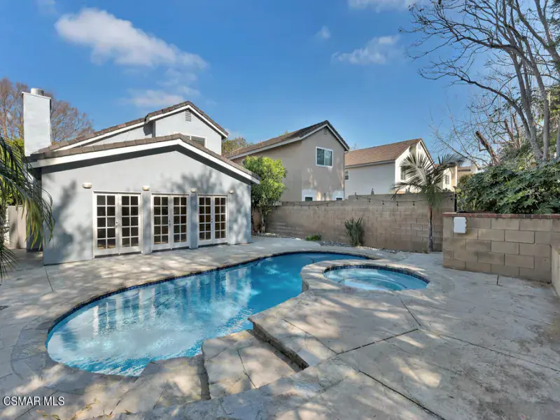 Welcome to this beautifully remodeled 4-bedroom, 2.5-bathroom Quail Ridge home, offering nearly 2,400 sq ft of thoughtfully upgraded living space. Tucked away on a serene cul-de-sac street, this light-filled residence immediately impresses with its open-concept design, modern finishes, and welcoming ambiance. Upon entry, you are greeted by a formal foyer that opens to an expansive living and family room. Three sets of French doors create a seamless indoor-outdoor connection, leading to your private backyard retreat complete with private pool and spa–perfect for entertaining or relaxing at home. The gourmet kitchen has been beautifully updated with granite countertops, a center island, stainless steel appliances, and custom cabinetry, making it ideal for both daily living and hosting gatherings. A downstairs bedroom provides flexible living options for guests, an office, or multigenerational needs. Upstairs, you’ll find an oversized primary retreat complete with sitting area and en-suite bath featuring a double vanity, soaking tub, and walk-in closet. Down the hall, two additional spacious bedrooms and a shared bathroom complete the upper level. Recent upgrades include updated flooring, newer dual-pane windows, shutters, new front and back doors, lighting and systems upgrades enhancing both style, comfort and energy efficiency. The pool and spa have just been re-plastered and equipment updated, giving them a like-new feel. The HOA includes access to the nearby community pool and spa, offering an additional space to unwind. Ideally located near schools, shopping, and everyday conveniences, this exceptional property delivers the perfect combination of upgraded living and a prime location. You will absolutely love calling this home.