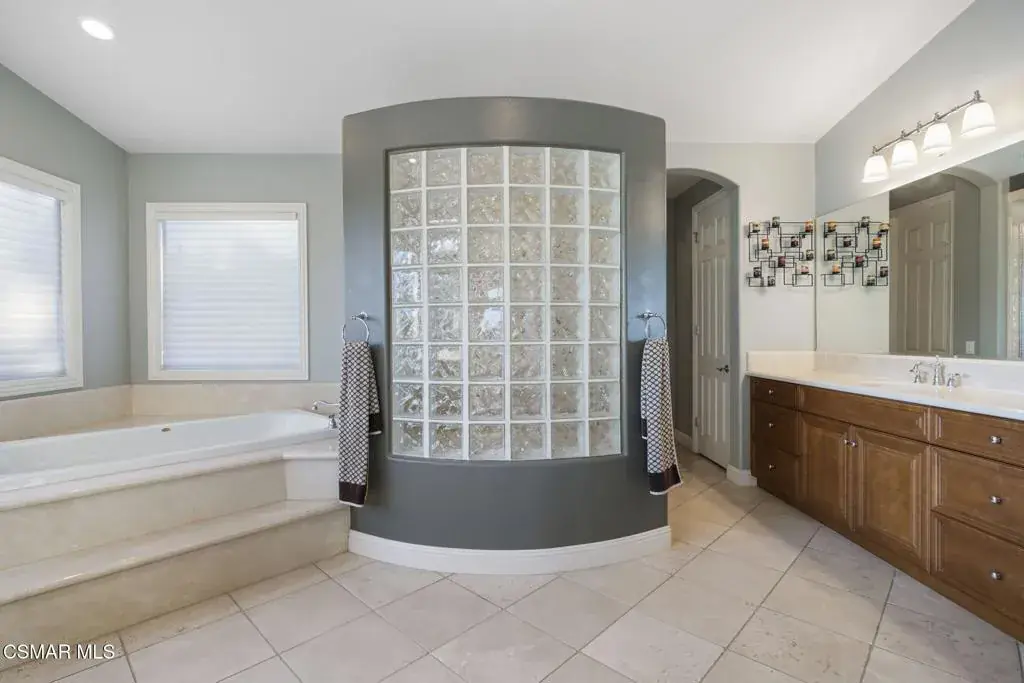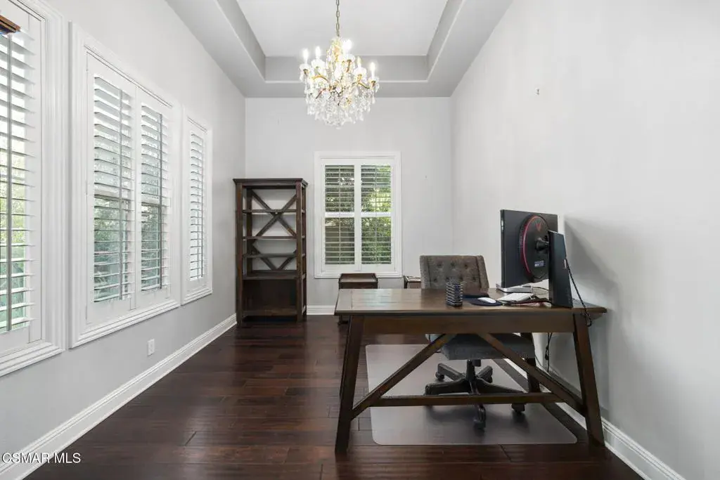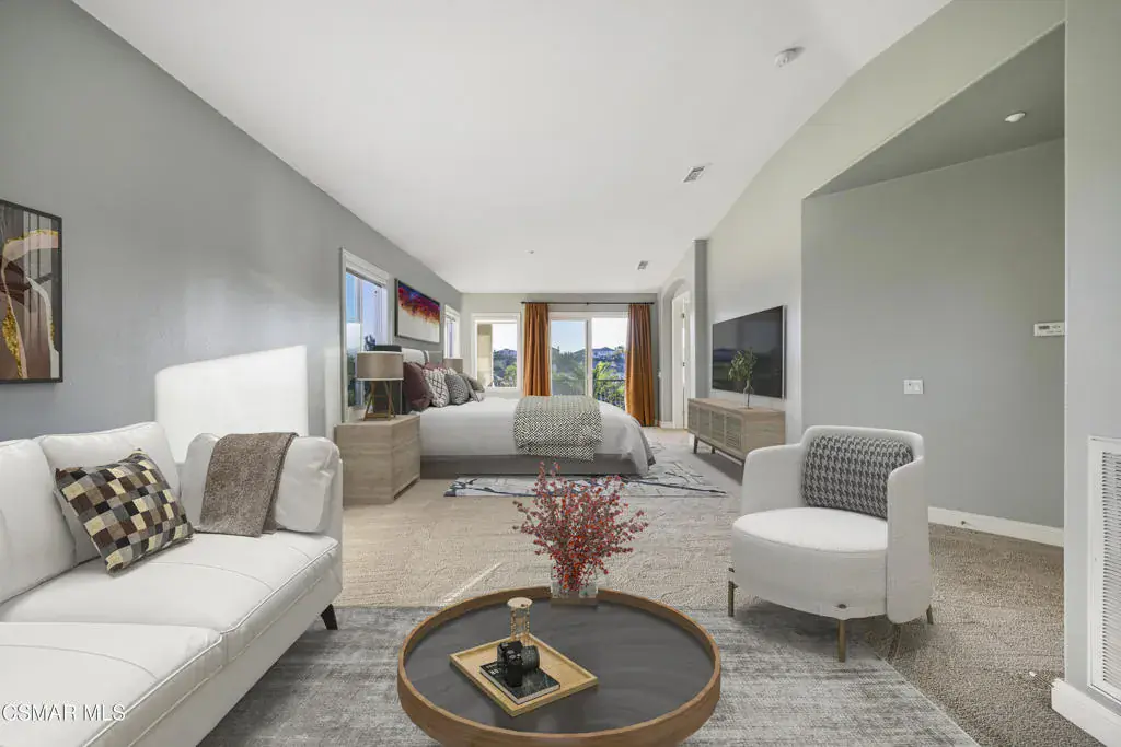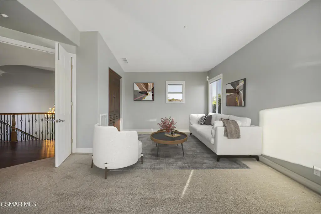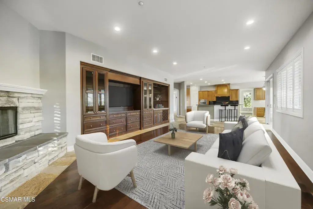 Welcome to 12364 Palmer Drive, a stunning luxury estate located in the prestigious gated community of Country Club Estates in Moorpark. This two-story masterpiece offers 4,764 square feet of thoughtfully designed living space with 5 bedrooms and 6 bathrooms, all set on a half-acre lot with breathtaking mountain views and close proximity to the Moorpark Country Club and its scenic 27-hole golf course.As you step through the grand two-story foyer, you’re greeted by soaring ceilings, a sweeping curved staircase, and an open, elegant layout. The first floor boasts a gourmet kitchen featuring stainless steel appliances, double ovens, a six-burner stove, granite counters, a center island, and a breakfast nook that flows seamlessly into the spacious family room with built-in cabinetry and a media niche. Formal living and dining rooms provide a perfect setting for hosting gatherings, while a private study/library adds sophistication and functionality. A first-floor guest suite with a private bath offers ideal accommodations for extended family or visitors. Upstairs, the primary suite is a private sanctuary complete with a sitting area, dual walk-in closets, a spa-like bathroom with a jetted soaking tub, dual vanities, and a walk-in shower. The suite also includes a balcony with stunning sunset views. Three additional bedrooms each feature their own private ensuite bathrooms, along with a flexible activity room perfect for a gym, office, or playroom. The backyard is an entertainer’s dream, featuring a resort-style pool and spa, an outdoor pavilion with a grand fireplace, a built-in BBQ with bar seating, and multiple lounge areas surrounded by lush landscaping. Whether hosting a summer party or enjoying a quiet evening under the stars, this backyard offers year-round enjoyment. Additional highlights include a four car garage, individual laundry room, central dual zone HVAC, and community amenities such as tennis courts, pickleball, playgrounds, and walking paths. This is more than a home, it’s a lifestyle of elegance, comfort, and California luxury. Some images are virtually staged.