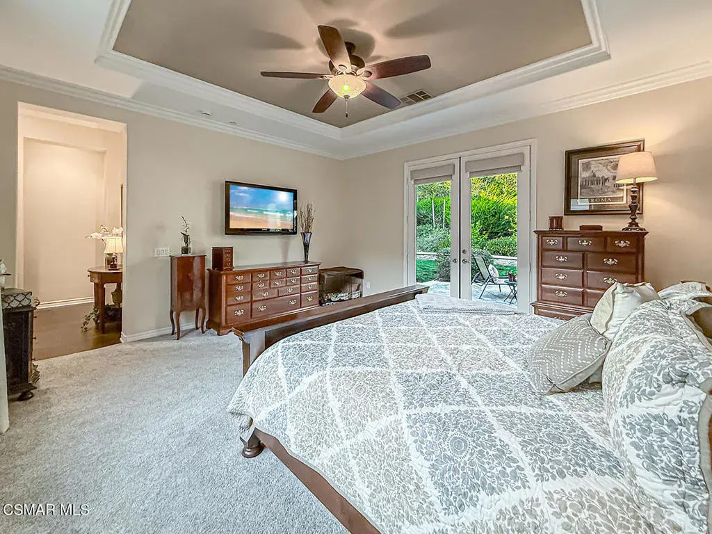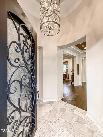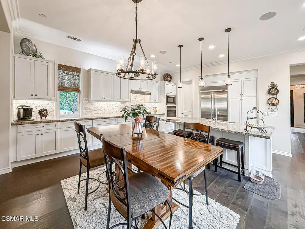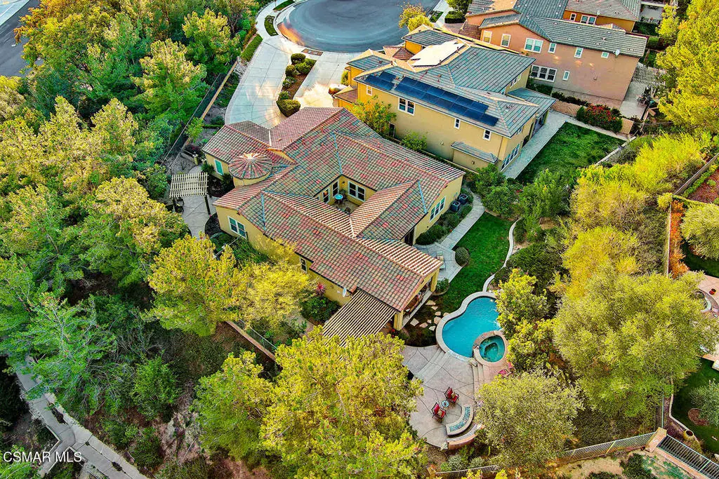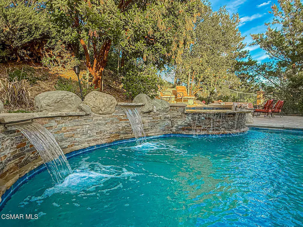 Welcome to this beautifully appointed single-story residence set on an oversized 17,000+ sq ft private flag lot in one of Moorpark’s most desirable neighborhoods. Offering views, privacy, and seamless indoor-outdoor living, this home is designed for both comfort and entertaining. Step inside to a light-filled, open floor plan highlighted by hardwood floors, crown molding throughout, and an integrated sound system that enhances everyday living. The heart of the home is the spacious chef’s kitchen featuring stainless steel appliances, granite countertops, and a large center island, perfect for gatherings and casual dining. The living spaces flow effortlessly to the backyard through expansive pocket doors, creating a true California indoor-outdoor experience. The generously sized primary suite offers a peaceful retreat, complemented by a large spa-like primary bath with dual vanities, creating both function and luxury. Additional bedrooms are well-proportioned and thoughtfully laid out, ideal for family, guests, or a home office. Outside, enjoy a resort-style setting complete with a sparkling pool and spa, built-in BBQ, fire pit, and multiple seating areas — all framed by scenic hillside views and mature landscaping. This rare offering combines single-story convenience, premium finishes, and an entertainer’s backyard in a quiet, sought-after location close to parks, schools, shopping, and freeway access.