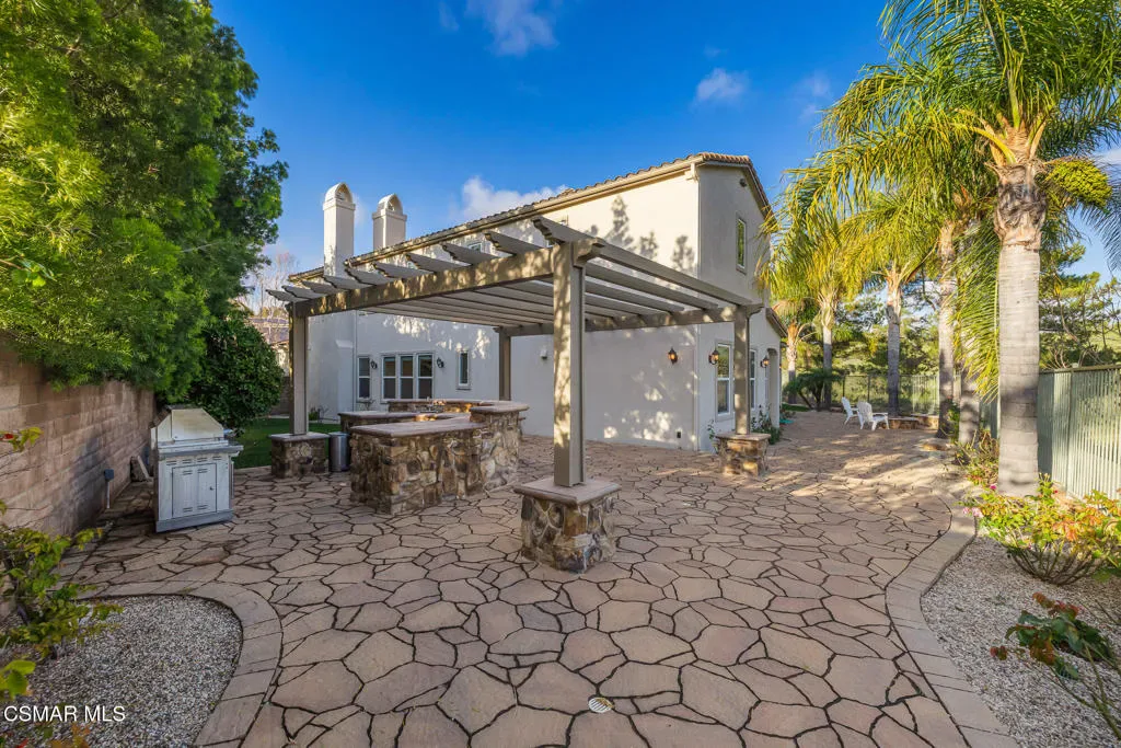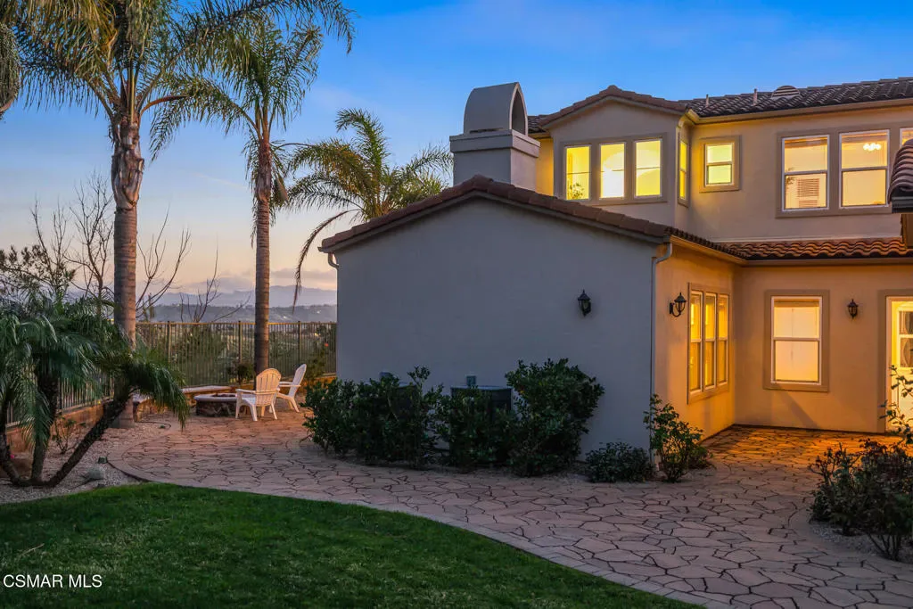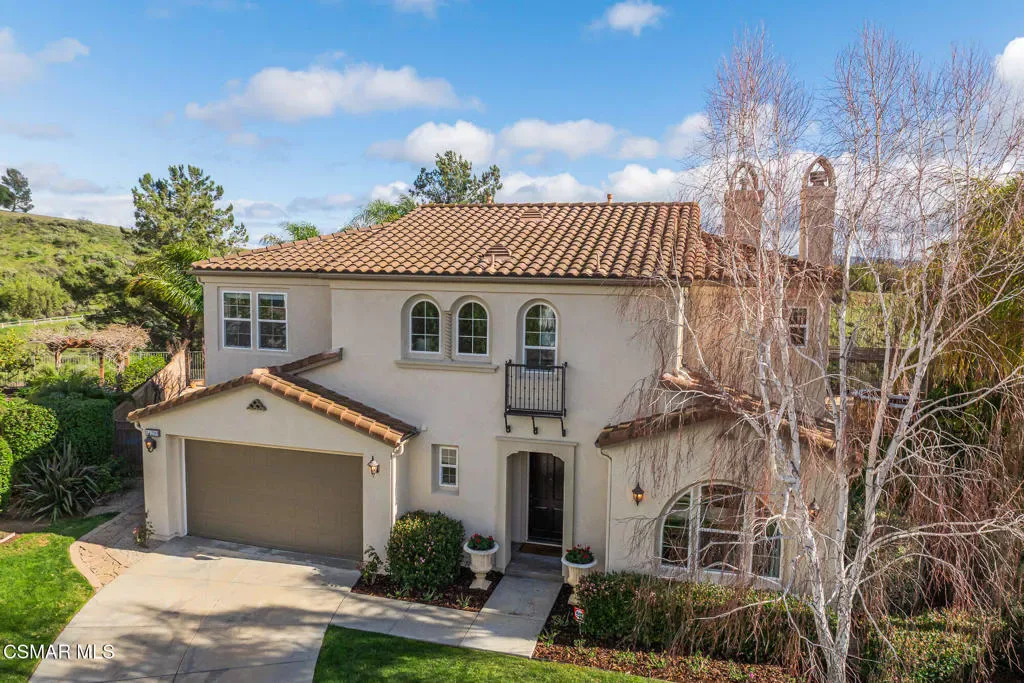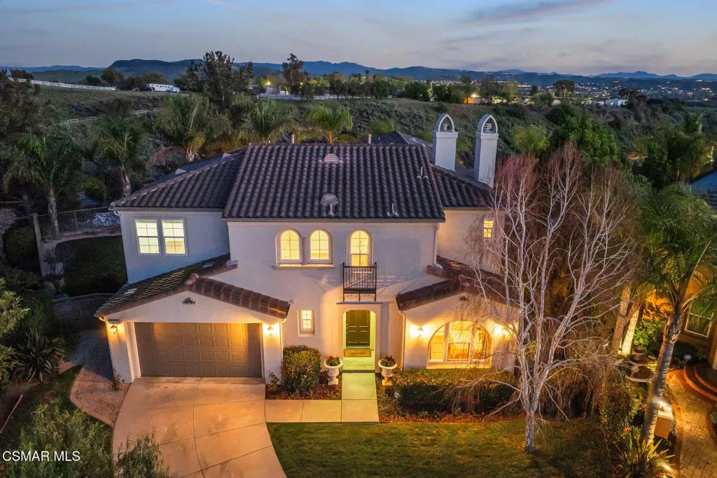 This exceptional home offers over 4,200 square feet, 5 bedrooms, each with en-suite bathrooms, with one located conveniently downstairs, an incredible floor plan with a paver-enhanced backyard made for entertaining or relaxing in the prestigious gated community of Meridian Hills.This beautifully maintained residence sits at the end of a quiet cul-de-sac, capturing stunning mountain and sunset views. Offering 5 bedrooms, 5.5 baths, a spacious loft and a private office, the home spans over 4,200 square feet of thoughtfully designed living space.A dramatic entry welcomes you with a sweeping staircase, soaring ceilings, recessed lighting and elegant stone flooring throughout the main level. Formal living and dining rooms provide ideal spaces for entertaining, while a charming private courtyard enhances seamless indoor-outdoor living.The chef-inspired kitchen is appointed with premium stainless steel appliances, granite countertops, abundant cabinetry, large island with seating, breakfast nook, walk-in pantry and butler’s pantry. The kitchen opens effortlessly to the light-filled family room, highlighted by expansive windows, a cozy gas fireplace, media niche and new ceiling fan.The main level features a full bedroom with en-suite bath, a dedicated office and a powder room–perfect for guests, multigenerational living, or flexible work-from-home needs. Upstairs, a spacious loft offers an additional gathering space, along with a convenient laundry room and three secondary bedrooms.The luxurious primary suite serves as a serene retreat, showcasing beautiful views, a private sitting area with fireplace, a spa-inspired bath with dual vanities, soaking tub, glass-enclosedshower and an oversized walk-in closet.The entertainer’s backyard is designed for year-round enjoyment with multiple seating and play areas, custom pavers throughout, a gas fire pit, fruit trees and breathtaking mountain vistas. An outdoor built-in bar complete with sink, refrigerator and freestanding gas BBQ creates the perfect setting for hosting family and friends.Additional highlights include fresh interior and exterior paint, new high-end wood laminate flooring throughout the entire second level, dual-zone HVAC with smart controls, video doorbell and security cameras and a three-car tandem garage.Residents of Meridian Hills enjoy resort-style amenities including a community pool and spa, clubhouse, BBQ area, playground, and tennis courts–all conveniently located near Moorpark Country Club, top-rated schools, parks, dining and shopping.An exceptional opportunity to own in one of Moorpark’s most sought-after gated communities.