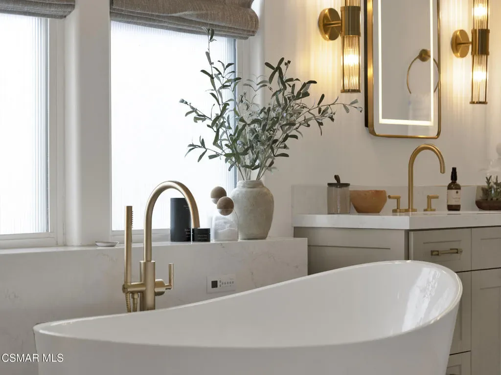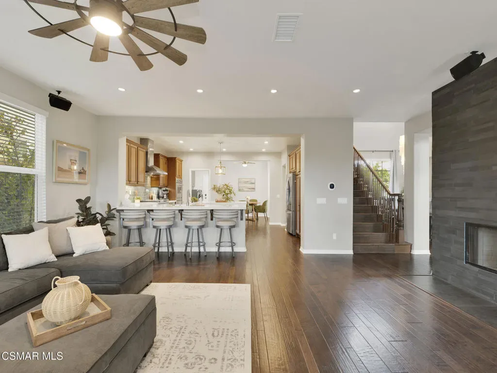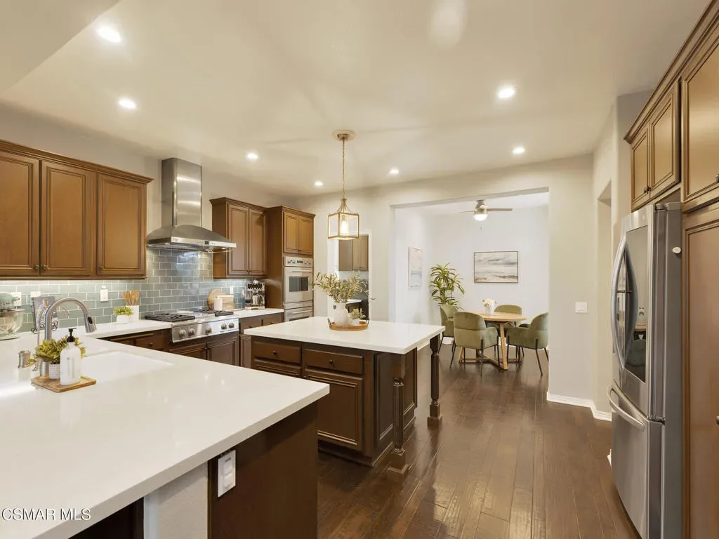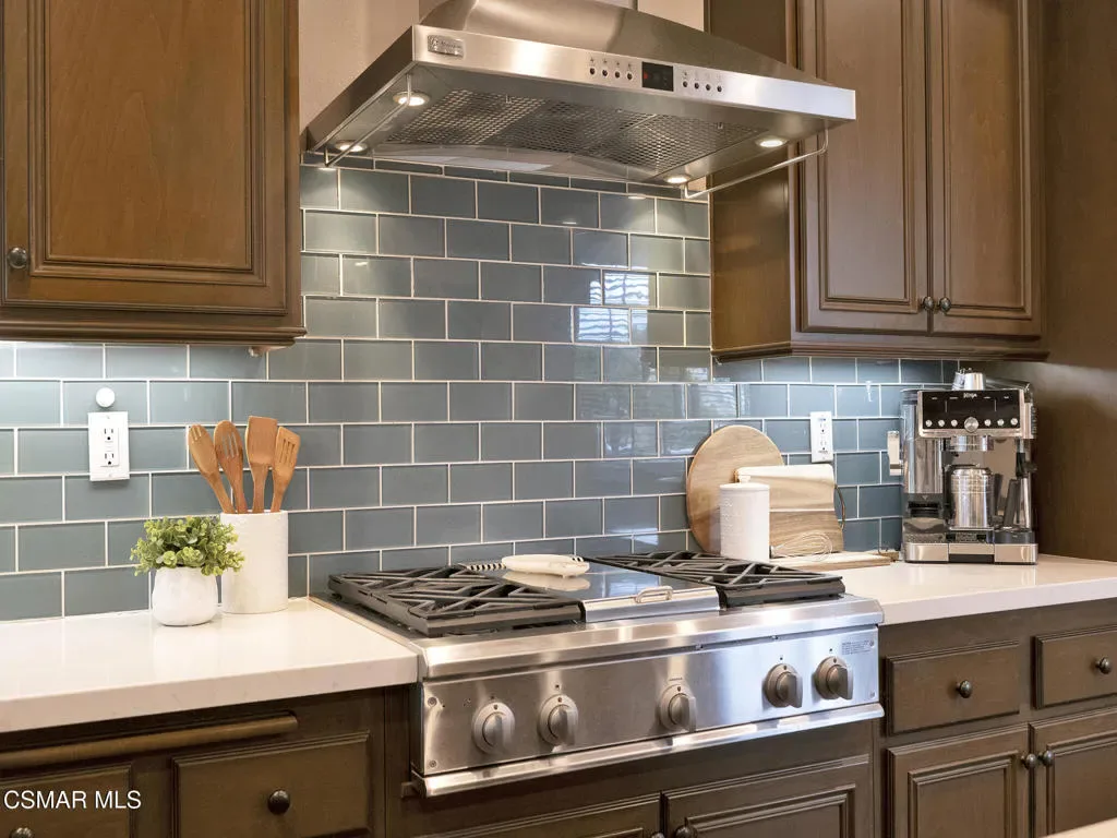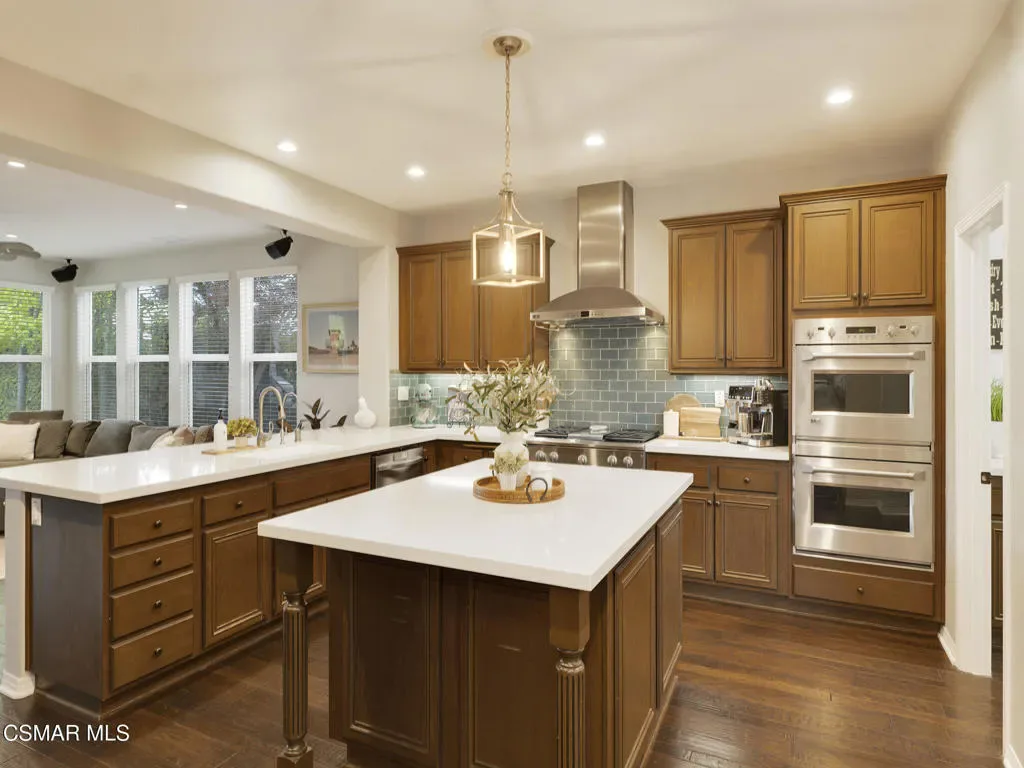 ELEGANT. EXPANSIVE. THOUGHTFULLY DESIGNED.Welcome to refined living in the gated enclave of Moorpark Highlands, where space, sophistication, and comfort come together seamlessly. Offering 3,886 SQ FT, 5 BEDROOMS, and 4.5 BATHS, this exceptional residence is designed for both grand entertaining and everyday enjoyment.At the heart of the home, an OPEN-CONCEPT CHEF’S KITCHEN shines with a professional-grade stove, DOUBLE OVENS, oversized center island, and rich wood cabinetry–perfect for gatherings large or small. Two spacious living areas and THREE DISTINCT DINING SPACES create effortless flow and flexibility.The PRIMARY SUITE IS A TRUE RETREAT, featuring a large custom walk-in closet and a FULLY REMODELED SPA-INSPIRED BATH, rebuilt from the ground up with custom vanities, air tub, RED LIGHT THERAPY, elegant gold fixtures, and serene neutral tones. Three additional EN-SUITE BEDROOMS, including a desirable MAIN-LEVEL SUITE, offer comfort and privacy for family and guests. Enjoy peaceful moments on the elevated balcony with local views–ideal for morning coffee or sunset unwinding.Thoughtful upgrades include OWNED SOLAR, dual heat-pump HVAC systems with UV-light carbon filtration and new ducting, WHOLE-HOUSE WATER FILTRATION, Blink security 4-camera system, and more. Outdoor living impresses with a COVERED PATIO, built-in gas grill, and lush landscaping. A THREE-CAR GARAGE (double bay plus separate single bay) adds exceptional flexibility.Residents enjoy a PRIVATE COMMUNITY POOL & SPA, all just minutes from Moorpark’s charming Main Street, boutique shopping, and notable dining.