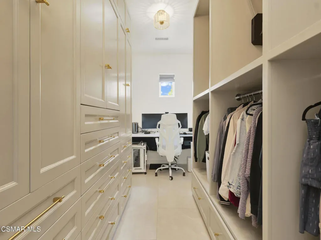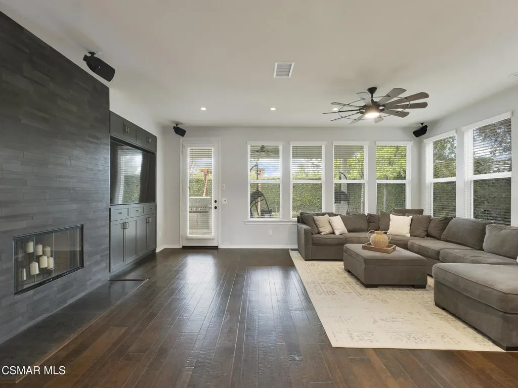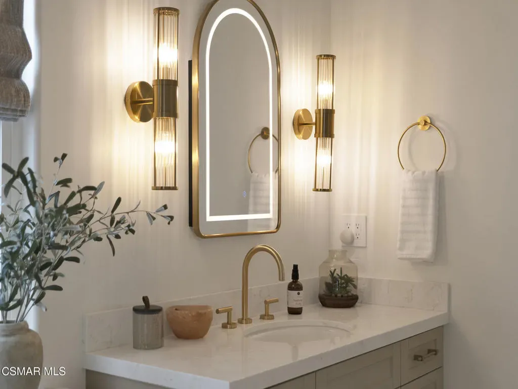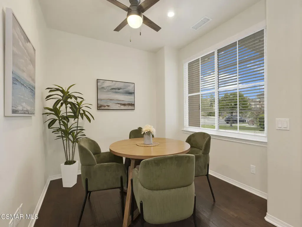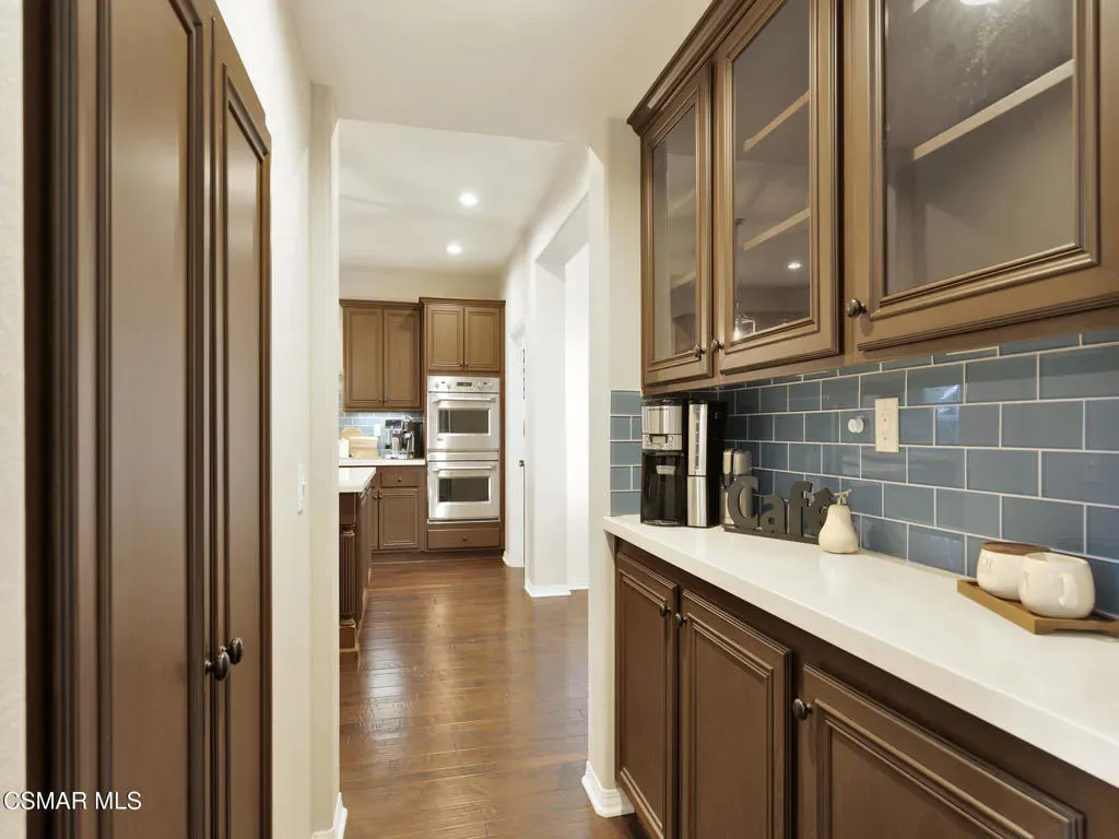 ELEGANT. EXPANSIVE. THOUGHTFULLY DESIGNED.Welcome to refined living in the gated enclave of Moorpark Highlands, where space, sophistication, and comfort come together seamlessly. Offering 3,886 SQ FT, 5 BEDROOMS, and 4.5 BATHS, this exceptional residence is designed for both grand entertaining and everyday enjoyment.At the heart of the home, an OPEN-CONCEPT CHEF’S KITCHEN shines with a professional-grade stove, DOUBLE OVENS, oversized center island, and rich wood cabinetry–perfect for gatherings large or small. Two spacious living areas and THREE DISTINCT DINING SPACES create effortless flow and flexibility.The PRIMARY SUITE IS A TRUE RETREAT, featuring a large custom walk-in closet and a FULLY REMODELED SPA-INSPIRED BATH, rebuilt from the ground up with custom vanities, air tub, RED LIGHT THERAPY, elegant gold fixtures, and serene neutral tones. Three additional EN-SUITE BEDROOMS, including a desirable MAIN-LEVEL SUITE, offer comfort and privacy for family and guests. Enjoy peaceful moments on the elevated balcony with local views–ideal for morning coffee or sunset unwinding.Thoughtful upgrades include OWNED SOLAR, dual heat-pump HVAC systems with UV-light carbon filtration and new ducting, WHOLE-HOUSE WATER FILTRATION, Blink security 4-camera system, and more. Outdoor living impresses with a COVERED PATIO, built-in gas grill, and lush landscaping. A THREE-CAR GARAGE (double bay plus separate single bay) adds exceptional flexibility.Residents enjoy a PRIVATE COMMUNITY POOL & SPA, all just minutes from Moorpark’s charming Main Street, boutique shopping, and notable dining.