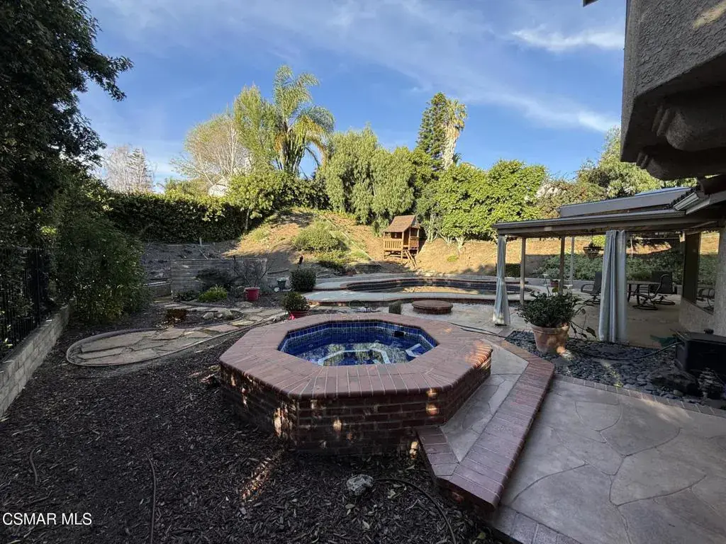 Great opportunity to own a one of a kind Moorpark pool home with no HOA! Its a fantastic residence for those seeking to accomodate multi-generational living with the amazing space it affords everyone. It has 5 bedrooms, 4 bathrooms, vaulted ceilings, a Large primary second floor retreat, with a cozy two sided fireplace into the large primary bathroom. There are 3 bedrooms downstairs, one of which could also be used as a primary bedroom with its own ensuite, that opens up to an amazing built in jacuzzi in the backyard. There is a spacious kitchen with breakfast nook, large island, granite countertops, plenty of cabinets, and opens up to a large family room. The spacious living room also has a double sided fireplace to family room, and both the living and family rooms open up to the beautiful back yard pool with sparkling pool that awaits. The large private backyard boasts a pool, spa, fire pit, covered patio, and is perfect for barbeques and entertaining. This home is a must see. It offers privacy, space, beauty, and is situated in a wonderful neighborhood, close to shopping and great schools.