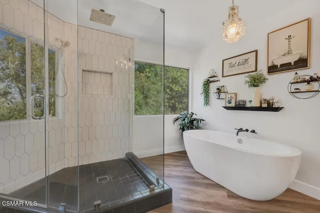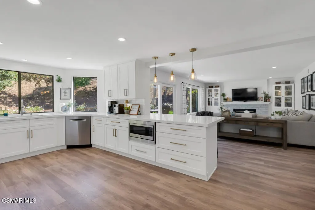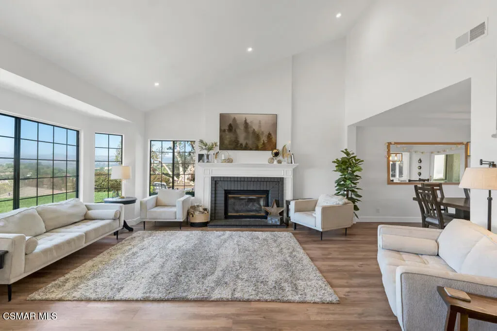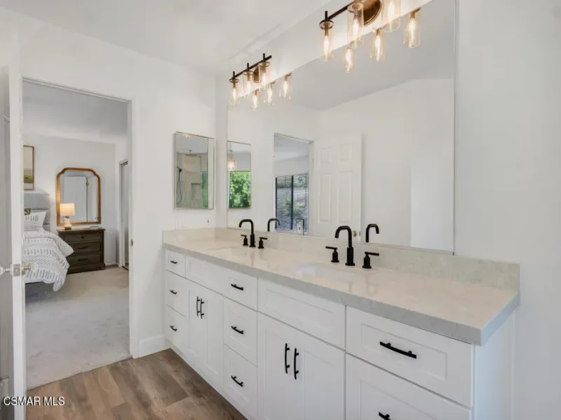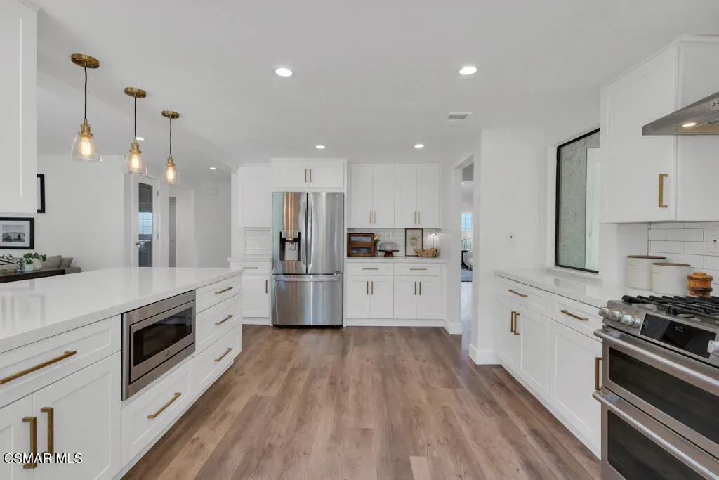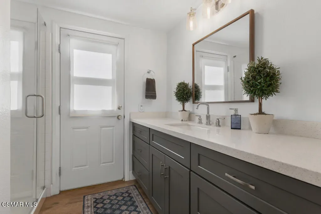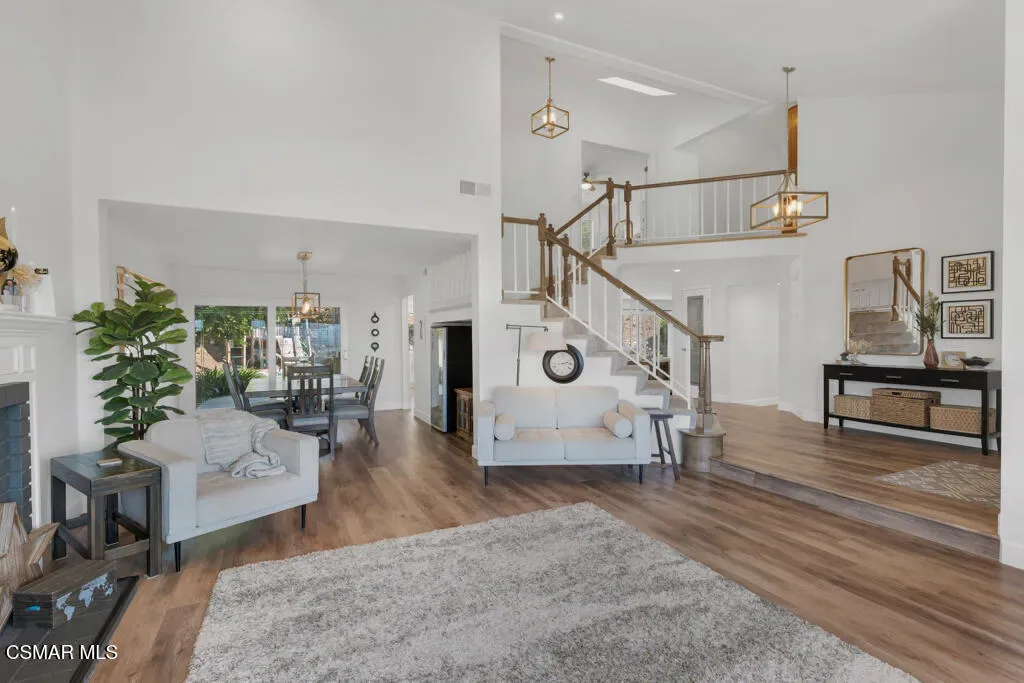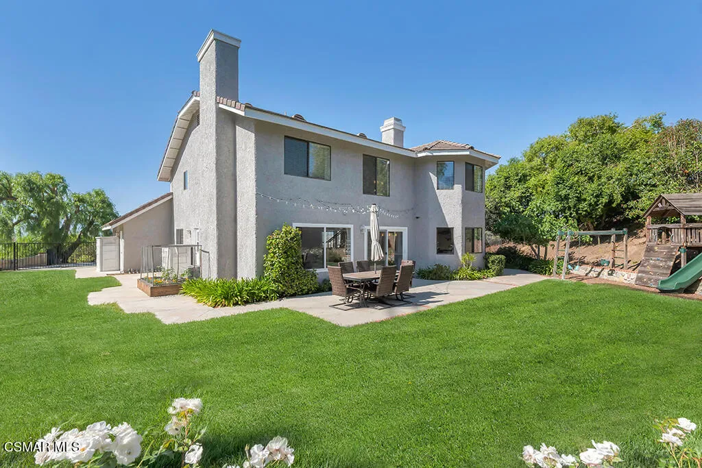 Welcome to this exceptional 4-bedroom, 3-bathroom home nestled in the heart of Moorpark, where privacy, space, and breathtaking panoramic views come together in perfect harmony. Situated on over half an acre, this tranquil retreat offers a rare combination of serenity and functionality. Step inside to a light and bright floor plan featuring beautiful SPC flooring and thoughtfully designed living spaces ideal for both everyday living and entertaining. The modern kitchen is a true centerpiece, complete with sleek quartz countertops and ample space to gather and create. This versatile layout includes a full bedroom and bathroom downstairs–perfect for guests or multigenerational living. Upstairs, escape to the stunning primary retreat, showcasing a designer bathroom that exudes comfort and style. Outside, the massive, gorgeously landscaped backyard is truly an entertainer’s dream. Whether hosting gatherings, relaxing in your own private oasis, or enjoying Moorpark’s spectacular 3rd of July fireworks from the comfort of home, this property offers an unmatched lifestyle. Just imagine soaking in your jacuzzi and star gazing at night! Additional highlights include no HOA, RV parking, a 3-car garage with epoxy flooring and 220V EV charging, and a private lot that enhances the sense of exclusivity. Don’t miss this one-of-a-kind opportunity to own a remarkable home in one of Moorpark’s most desirable settings.