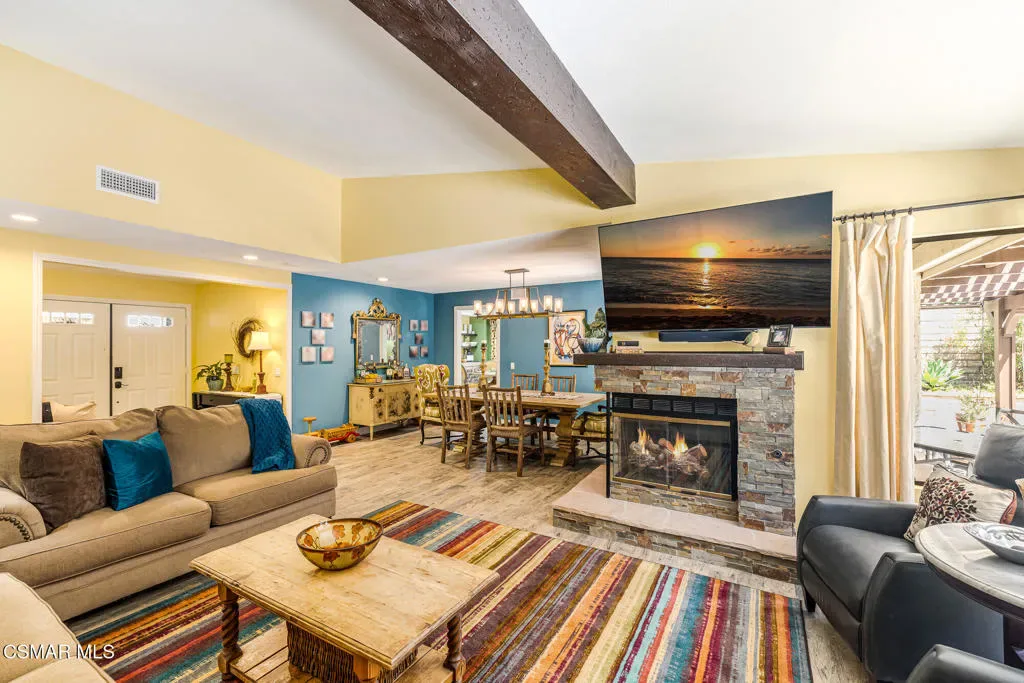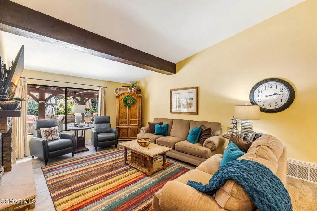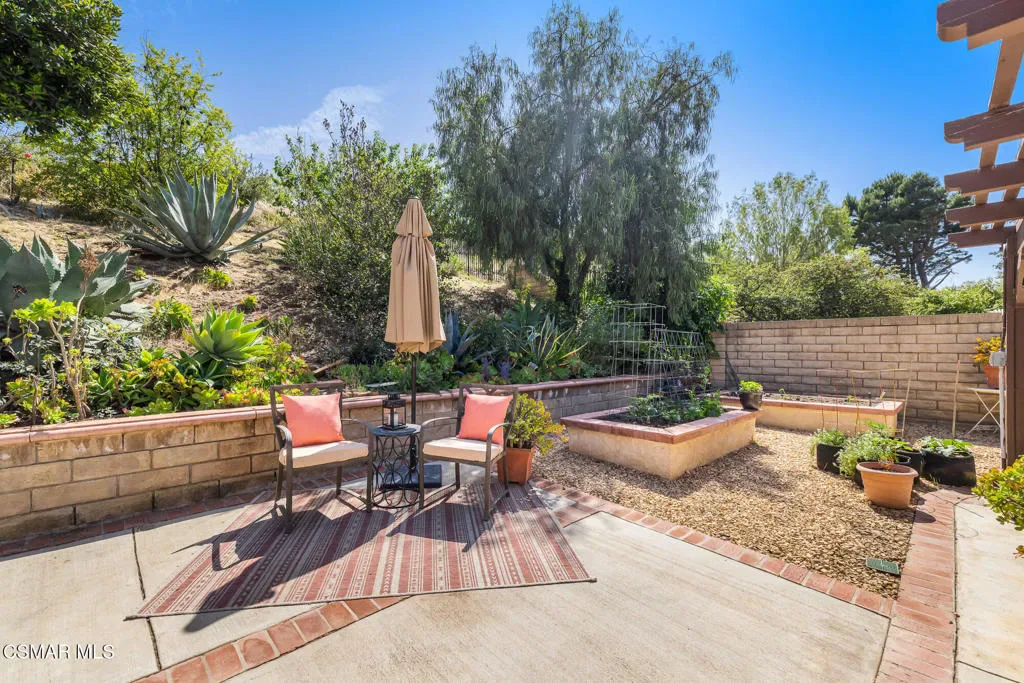 Welcome to this beautifully appointed 4 bedroom, 3 bath true single story home, ideally located in one of Moorpark’s most desirable settings. Tucked away on a quiet, tree lined cul-de-sac, this exceptional 2,186 square foot property sits on an expansive 17,424 square foot lot with picturesque views and thoughtfully designed terraced areas perfect for planting, relaxing, and taking in the scenery. Inside, soaring ceilings and beautiful flooring create a light and inviting atmosphere, complemented by an updated kitchen with a charming breakfast nook. The spacious bedrooms include a shared hallway bath, while the primary suite offers a peaceful retreat with a newly renovated bath featuring dual vanities and an oversized step in shower. A warm cottage style interior adds character and comfort, making it the perfect setting for gatherings and Sunday dinners. The patio flows seamlessly from the family room, creating a serene outdoor escape complete with a built-in BBQ area, space for child’s play, evenings by the firepit and multiple raised garden beds ready for your summer harvest. Incredible easy access to the freeway makes commuting a dream and best of all – there is no HOA. This is a home where every detail invites you to settle in and create lasting memories. Don’t miss it.