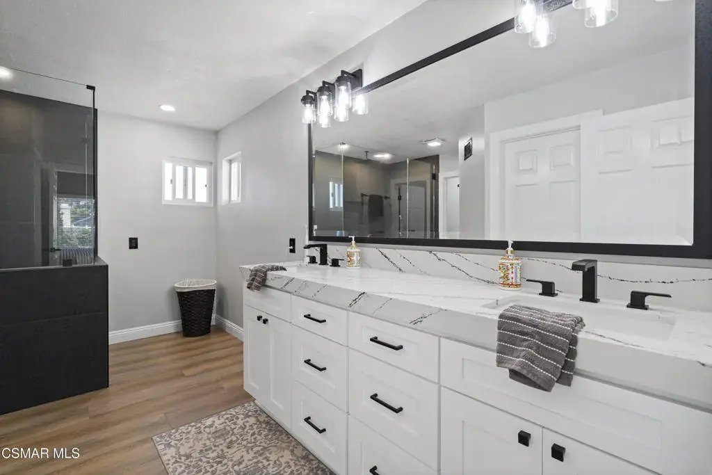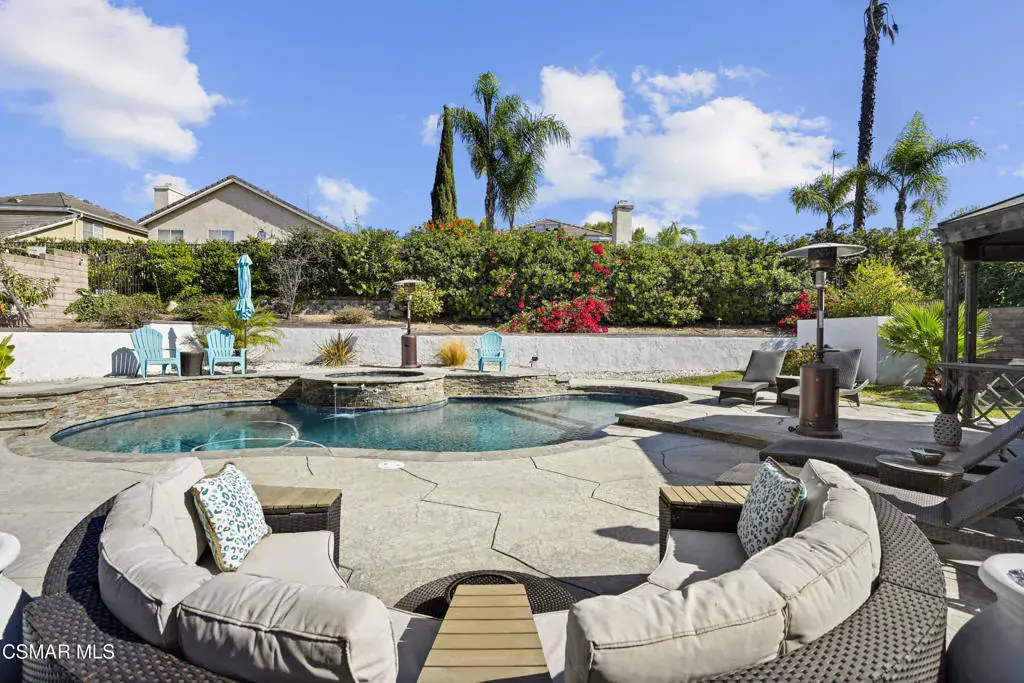 Stunning Moorpark home with 3 bedrooms, 2.5 baths, and just under 2,200 sq ft on an 8,015 sq ft lot, with a 3-car garage. Beautifully remodeled kitchen, three upgraded baths, and new wood-like flooring. The spacious primary suite features two custom walk-in closets and a spa-style bathroom with an oversized shower. Enjoy a private backyard oasis with pool/spa, custom BBQ with sink & fridge, a gazebo, and lush landscaping. Energy-efficient upgrades include a Tesla battery charger, owned solar, water filtration, and a newer roof. Located in one of Moorpark’s most desirable neighborhoods, this property is perfect for those seeking a move-in-ready home.