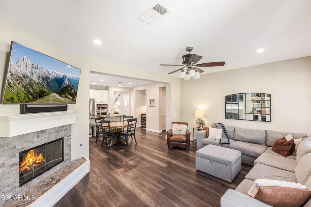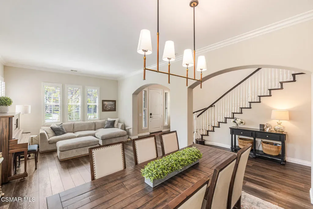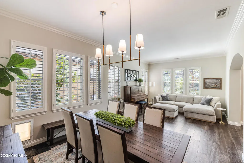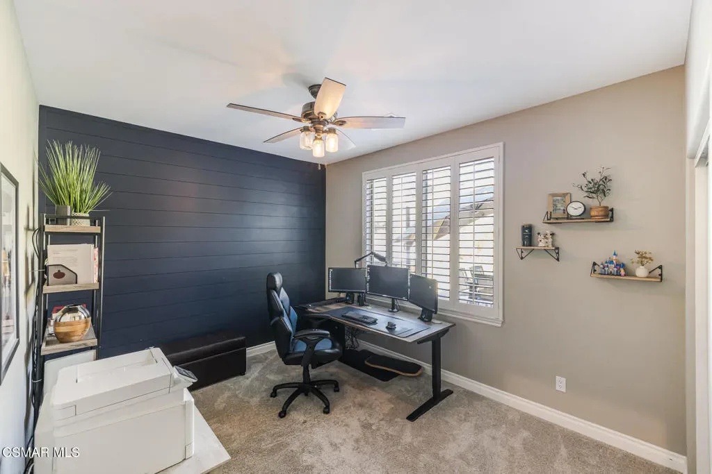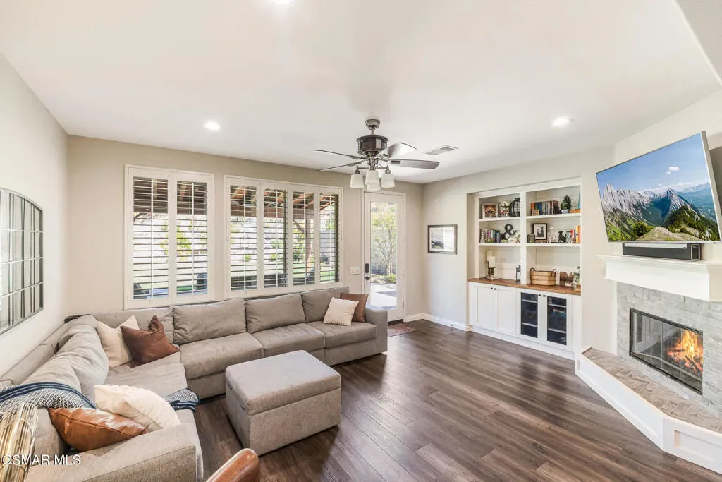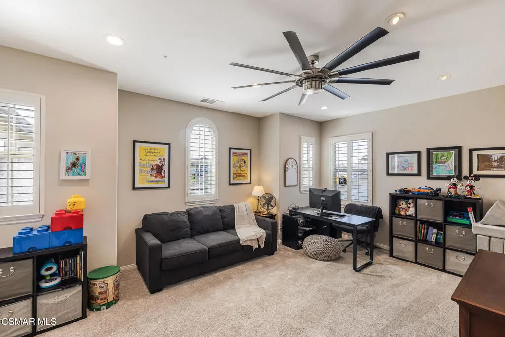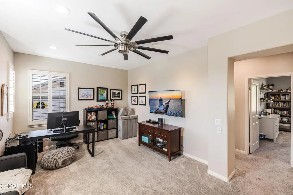 Located in the gated community of Moorpark Highlands, this beautiful Cherry Hill home sits on an expansive approximately 14,100 sq. ft. cul-de-sac lot and offers over 2,900 sq. ft. of comfortable living space. The home features 4 bedrooms, 3 bathrooms, and a versatile loft area perfect for a home office, media room, or additional living space.Inside, you’ll find tile flooring, neutral carpeting, custom cool-tone paint, and elegant finishes throughout. The spacious kitchen is appointed with granite countertops and a custom tile backsplash, making it ideal for everyday living and entertaining.This home is equipped with numerous smart home features including two Nest thermostats for improved energy efficiency, smart switches with LED lighting, motion detectors, and window and door sensors. Additional upgrades include plantation shutters, crown molding, ceiling fans, and much more. Energy efficiency is enhanced with a solar system paired with two backup batteries, providing reliable power and added savings.The oversized backyard is perfect for entertaining and outdoor living, featuring a large covered patio with custom lighting, stone pavers, and plenty of room for gatherings with family and friends. Conveniently located close to the community HOA pool and spa, this home offers the perfect blend of comfort, technology, and lifestyle.