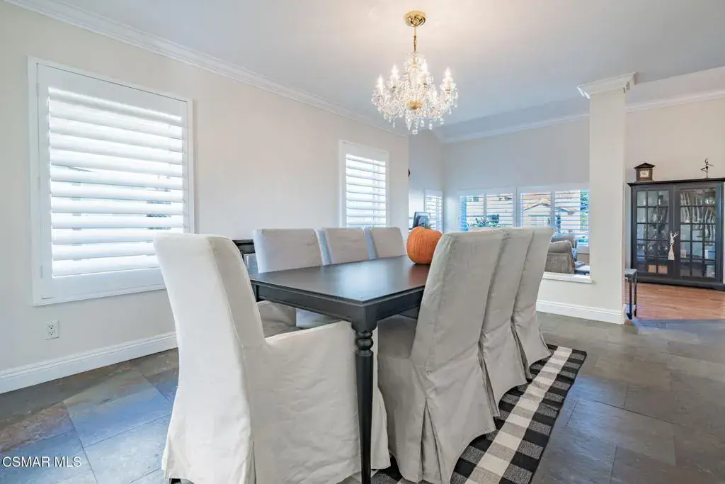 Welcome to this beautifully updated 5-bedroom, 4-bathroom two-story home in the highly desirable Buttercreek community of Moorpark. Move in ready and full of charm, this home features newer flooring, newer windows, and elegant crown molding throughout.The spacious layout is filled with natural light and includes a stylish bar area with a sink perfect for entertaining guests or enjoying quiet evenings at home. The living areas flow seamlessly into the large backyard, which backs to open farmland, offering exceptional privacy with no neighbors behind.Relax or entertain under the covered patio and enjoy the expansive yard space ideal for kids, pets, gardening or future plans.This bright, comfortable home offers both functionality and serenity in one of Moorpark’s most established and peaceful neighborhoods.