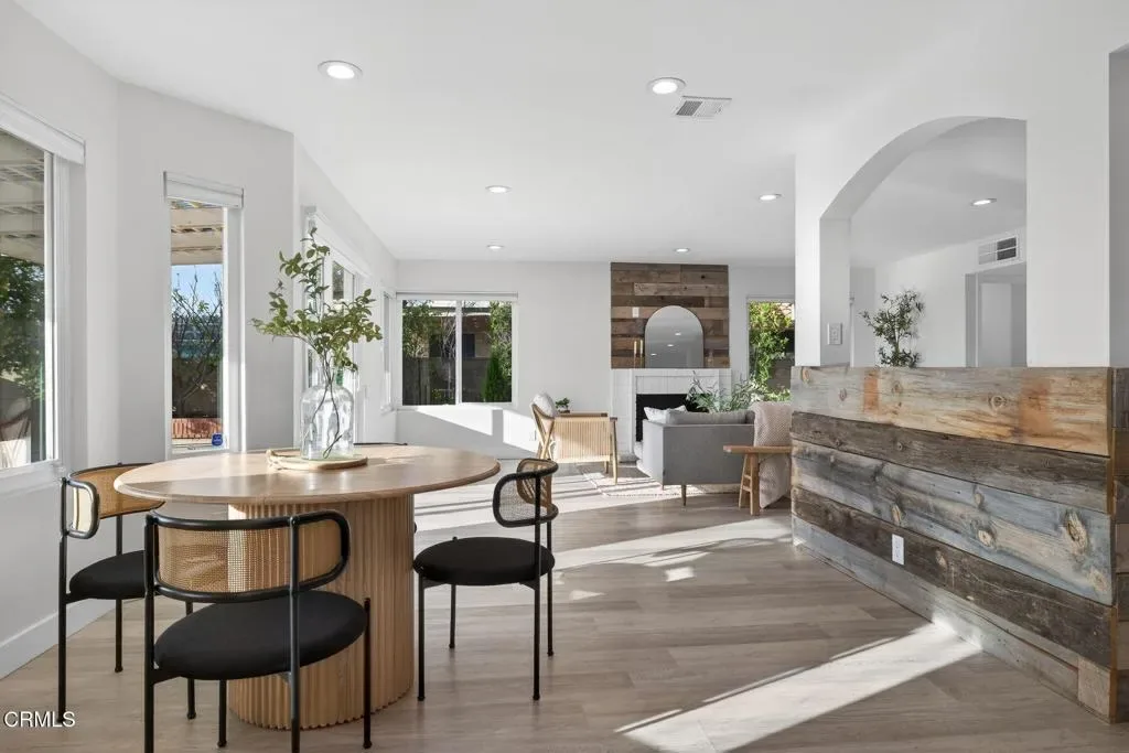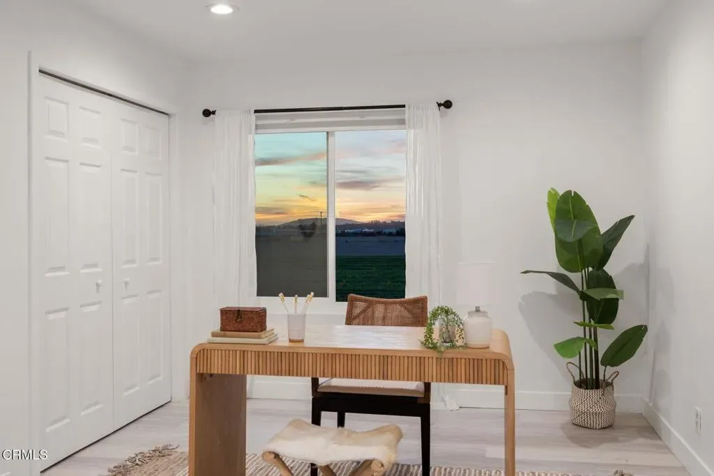 ***PRICE IMPROVEMENT!!*** Set against the tranquil backdrop of open farmland with no rear neighbor, this stunning 2,700+sf South Moorpark residence offers the rare blend of privacy, and elevated living. Endless skies & breathtaking sunset views create a daily masterpiece right from your own backyard. Beyond its alluring curb appeal & meticulous landscape, the home’s light-filled interior welcomes you with soaring ceilings, and an expansive open layout- offering two spacious living areas, each anchored by their own fireplace. A formal dining room provides the perfect setting for elegant dinners, while the beautifully updated kitchen opens seamlessly to an additional casual dining nook, ideal for morning coffee or sunset meals. The spacious kitchen is complete with ample storage space, new stainless appliances, butcher block counter tops, gas range, wine fridge and a large bay window to welcome mountain views and stunning sunsets. Step outside to the backyard where a spacious covered patio sets the stage for year-round outdoor living. The full perimeter of mature fruit trees (apples, oranges, guava, pomelo and multiple citrus) creates a lush orchard-like setting–while tall ficus hedges provide additional privacy and a rich green backdrop. Fully plumbed for both an above ground pool and hot tub, the space provides endless possibilities for outdoor fun. Upstairs, the home features all four spacious bedrooms and two additional fully renovated baths- ideally keeping living areas downstairs, while maintaining privacy and separation above. The massive primary suite is a true retreat- a sanctuary with generous proportions, abundant natural light, and a beautifully updated bath with dual vanities, soaking tub, large shower, walk-in closet, and exceptional birds eye views of the serene farmland below. Down the hall are three additional bedrooms, and fully updated guest bath with walk in shower. Countless highlights include all newer dual pane windows with privacy shades throughout, recessed lighting, laminate flooring, central air conditioning, fully owned Brinks alarm system with security cameras and doorbell camera, and multiple eero wifi extenders. Large THREE-car attached garage provides ample storage and parking, plus TWO Tesla brand EV car chargers! Relish in the luxury of this modern and move-in ready home, while only minutes to parks, great schools, restaurants, shopping, and all that beautiful Moorpark has to offer!
