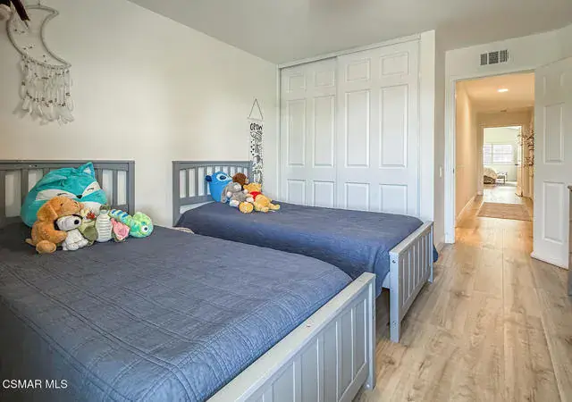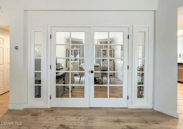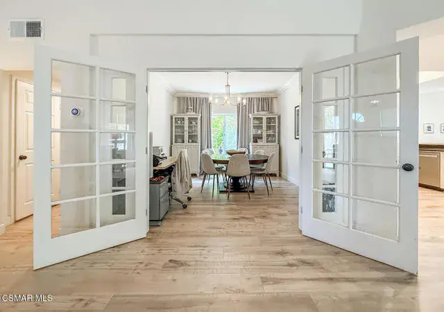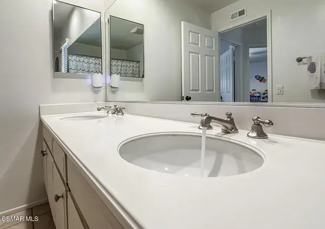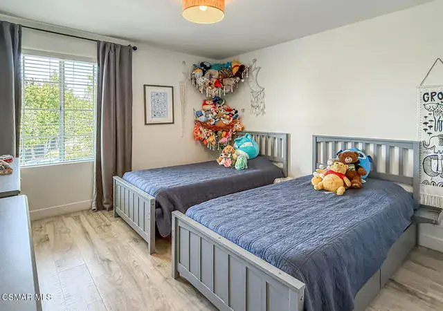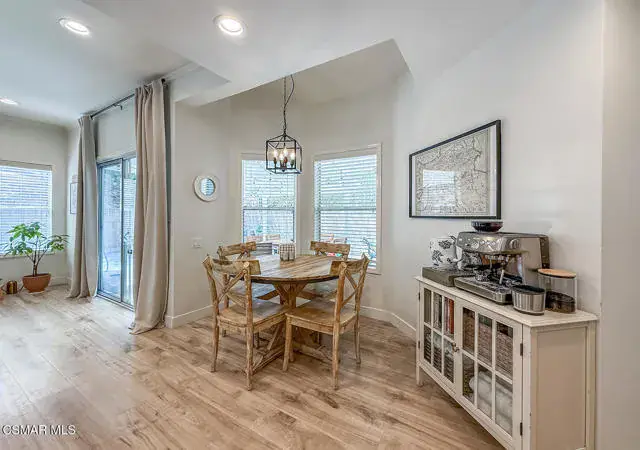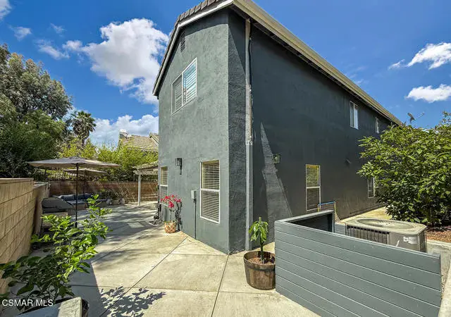 Discover your dream home in the highly sought-after Quail Run neighborhood, nestled within the esteemed Moorpark Unified School District. Enjoy the benefits of a low Homeowners Association (HOA) that includes access to a sparkling community pool and spa, along with convenient front yard maintenance. This stunning two-story residence boasts an inviting floorplan designed for both comfort and elegance. As you step inside, you’ll be greeted by a spacious open living room featuring soaring vaulted ceilings, custom shades, and a sliding door that seamlessly connects to the backyard, perfect for embracing an indoor-outdoor lifestyle. The adjacent formal dining room, accessible through charming French doors, offers versatility for privacy – ideal for use as a home office, exercise room, or creative space. The heart of this home is its beautiful kitchen family room, showcasing sleek black granite countertops and modern stainless steel appliances. A delightful dining area by two windows fills the space with natural light. The kitchen flows effortlessly into the cozy family room, which also includes a sliding door leading to the yard. Additional conveniences include a powder room on the main floor and a spacious two-car attached garage with custom built-ins. The brand new 50 gallon water heater was just installed. Throughout the home, luxurious vinyl flooring adds a touch of sophistication. Upstairs, retreat to the expansive primary bedroom, complete with generous closets and an en-suite bathroom that features a double vanity, a large sunken tub, and a separate shower for your relaxation and convenience. Down the hallway, you will find two generously sized bedrooms with a double vanity bathroom. Step outside to your private, low-maintenance backyard, brimming with possibilities for vibrant flower beds and productive vegetable gardens. The buildable hillside is ready for stairs and a deck. Enjoy the many fruit trees – mandarin in the front yard, lemon, apple,pomegranate, and avocado in the side yard This property is located directly across from the community pool and spa allowing for an open and spacious view from the front of the home. The home is just moments away from top-rated schools, shopping venues, parks, freeways, and a variety of dining options. Don’t miss out on this incredible opportunity- this home offers the perfect blend of style, comfort, and convenience. Make it yours today!