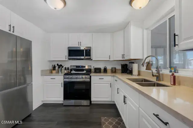Better take a look at this Beautifull 2 bedroom 2 bath, plus an office home located in a great family park in Moorpark. Features 1344 sqft, completely remodeld kitchen with new cabinets, counters and stainless steel appliances. including a new refrigerator. Large added oversized pantry. All new beautiful wood laminate flooring throughout. Freshly painted interior. Light and bright family room with a fireplace. Indoor laundry room with lots of cabinets. Both baths have been completely remodeled from top to bottom. All new doors,baseboards, switch plates and plugs. There is a convenient broom closet near the kitchen. If thats not enough there is a office/den to use for work or play. The roof is only 1 years old. It has a 2 car carport plus a new shed. The private back yard is great for the kids. There is a community pool tennis courts and a great rec room. This is a must see!