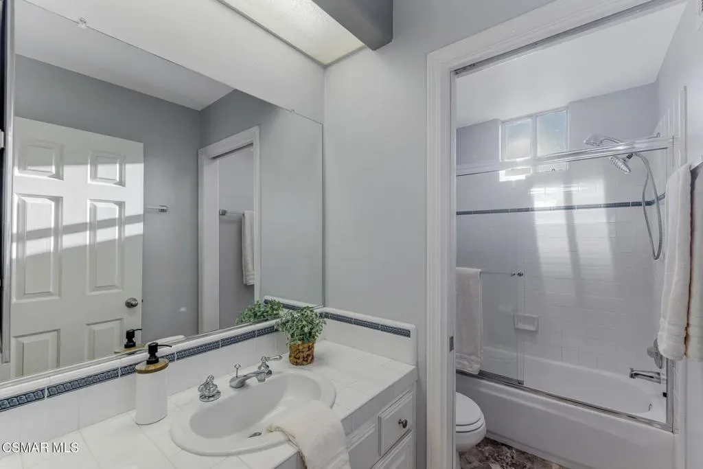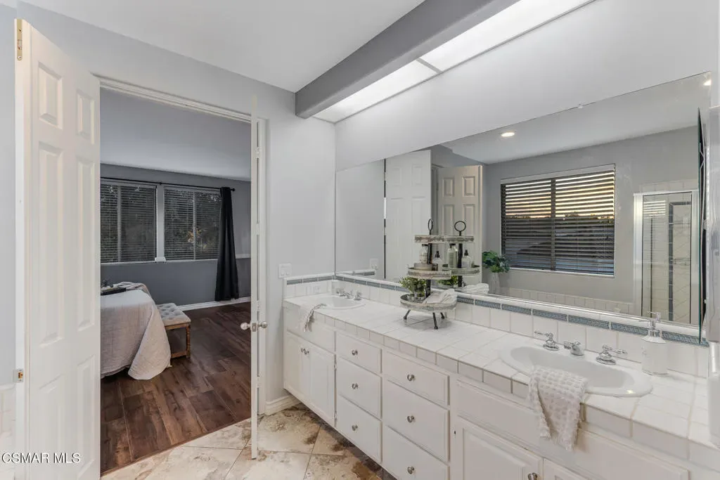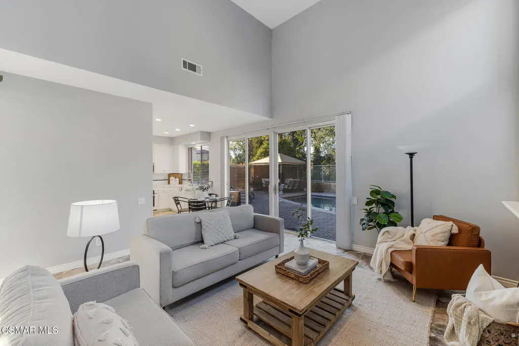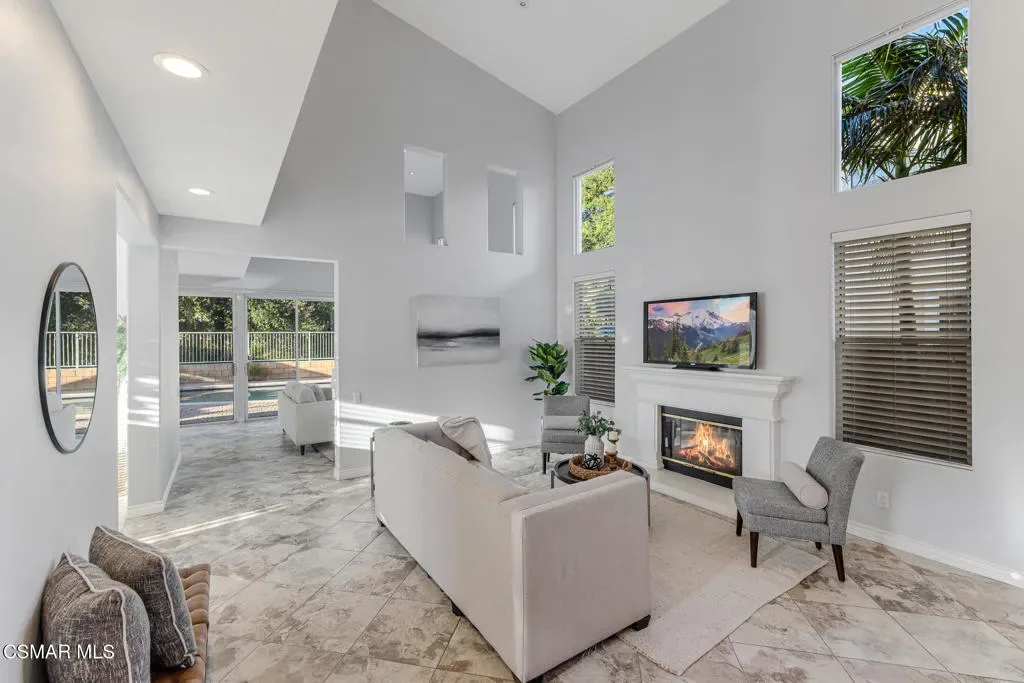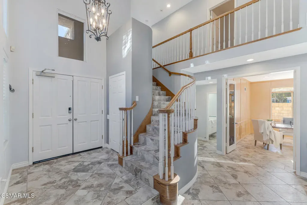 Welcome to 3969 Sunsetridge Rd. in Moorpark, a beautifully maintained 2,200 sq. ft. home offering 4 bedrooms and 3 bathrooms in the highly sought-after Belmont Community, including a desirable downstairs bedroom perfect for guests or a dedicated home office complete with custom built-in cabinetry and full bathroom on the lower level for added convenience.Step inside this light and bright home to soaring ceilings throughout the main living areas, creating an open, airy feel. The formal dining room sits adjacent to the living room, offering an ideal space for gatherings and celebrations. The family room flows seamlessly from the kitchen, making this layout perfect for entertaining and everyday connection.Upstairs, you’ll find the spacious primary suite featuring a spa-like en suite bathroom complete with dual vanities, an oversized bathtub and a glass-enclosed shower, along with a large walk-in closet. Two additional secondary bedrooms and a well-appointed Jack-and-Jill bathroom are just down the hall. The laundry room is also located upstairs, offering ease to daily living.Outside, enjoy the refreshing pool, expansive backyard and beautiful paver hardscape — perfect for hosting guests or unwinding in your own private retreat. With no neighbors behind you and the community pool area on one side, your privacy is a premium.Located close to shopping, dining and award-winning schools, this is the home you’ve been waiting for.