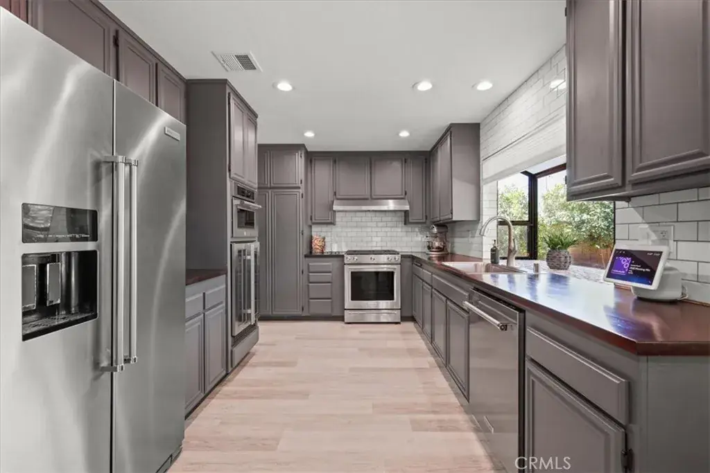 Beautiful, spacious, completely remodeled house. Located in the prime south Moorpark Area with no houses behind you. Immaculate sunset views of farm fields and beautiful Mountains. A warm and inviting modern style interior with an open floor concept. Plenty of windows throughout making the interior bright like day, Laminate flooring and recessed lights throughout the house. Inviting and huge living and family rooms with fireplaces in both. Formal dining room and a large kitchen with recently purchased name brand stainless-steel appliances. The master suite includes a very large bedroom and big walk-in closet, with a nicely renovated modern master bath with a bathtub, walk-in shower and dual vanities. There are three other nicely sized bedrooms, and all bathrooms are updated and modern. All windows throughout the house are new energy efficient and double-paned, all windows have modern energy efficient cellular blinds featuring both blackout and daylight options. Front yard features beautiful landscaping with large evergreen Ficus trees on both sides adding more privacy to the property. The backyard is all paved with cozy red bricks and a large covered patio. The entire backyard perimeter covered with a large variety of fruit trees (figs, orange, apple, loquat, apricot, grapefruit, guava, and lemon) and more Ficus trees all around. It will surely provide years of enjoyment for your entertainments & gatherings, It will create enjoyable relaxation & unforgettable memories. The house has a 3-car attached garage, with TWO TESLA BRAND ELECTRIC VEHICLE CHARGERS, one inside and one outside the garage (can charge any EV car with adapter). The house has modern all-paid-off Brinks video security cameras in front, back and side of the house, with a doorbell camera at the front door that can automatically ring the doorbell and show your guests on your smartphone as they walk up to your front door. No HOA or MELLO ROOS, this property has very convenient access to shopping, dining and freeways (23 and 118). This beautiful home will not last long