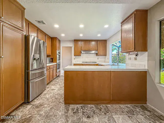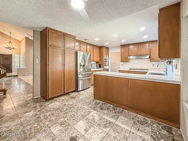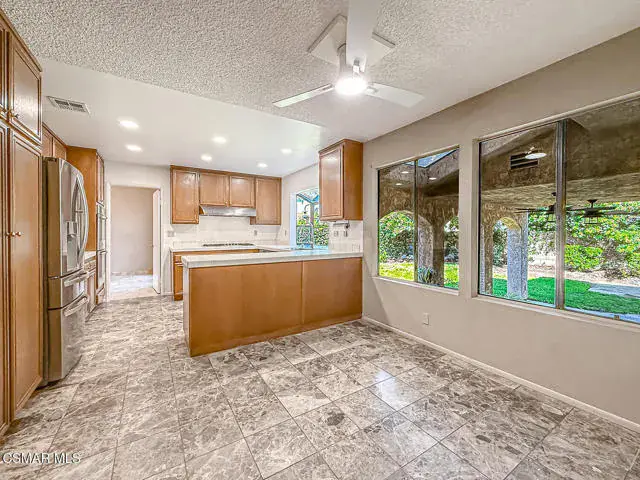 An astonishing opportunity awaits buyers of all kinds at this endlessly spacious home, with an attached ADU with its own private entrance. Inside you’ll find one of Moorpark’s signature floor plans, with a twist – a 5 bedroom and 3 full bathroom main house, while the 2 story ADU provides an additional bedroom and 3/4 bath upstairs, plus a living area and butler’s pantry downstairs. The versatility of the ADU space provides all sorts of possibilities for the new homeowner, whether they are looking for rental income, using it for multigenerational living, or just want a little extra space to enjoy that extends beyond the main home. What you see with your eyes does not tell the whole story of the home. Yes, you will see the soaring ceilings and new travertine floors in the living room, dining room, and kitchen, and you’ll notice the newly resurfaced cabinets, new stainless steel appliances and sink in the kitchen, and the newly renovated primary bathroom is sure to catch your eye. You’ll marvel at the large bedrooms, find ample storage everywhere you turn, and take note of the large inviting backyard with its new fans and lights on the patio and charming fountain. However, it’s the items you’re not looking at that are sure to bring peace of mind to any buyer, including updates to integral systems like the new HVAC units and new water heater, brand new lighting throughout, and thoughtful additions like Fisher Pykel dish drawers, new garbage disposal, and a remodeled laundry room. With all of those items taken care of for you, plus the already made upgrades to the upstairs bathrooms and kitchen, you can now focus on your preferred cosmetic and design additions. Situated on a lovely cul-de-sac, just steps away from the neighborhood pool, and minutes away from everything Moorpark has to offer, you could not ask for a more perfectly located home.