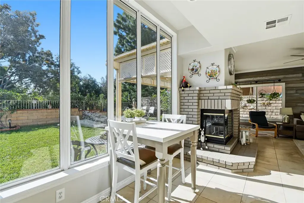 Meticulously maintained and thoughtfully designed, this home reflects true pride of ownership from the moment you arrive. Step inside to soaring two-story ceilings in the formal living room, seamlessly connected to the formal dining room with sliding doors that open to the backyard—perfect for both everyday living and entertaining. The updated kitchen features quartz countertops, crisp white cabinetry, stainless steel appliances, a breakfast bar, and a sunny casual dining nook with expansive windows. The kitchen opens to a spacious family room with a cozy fireplace and an additional slider to the backyard, creating a bright and inviting gathering space. The private backyard is a true retreat, overlooking mature trees and thoughtfully designed for outdoor enjoyment. A tranquil water feature adds a sense of calm, while the built-in bar area creates the perfect setting for entertaining, relaxing evenings, or weekend gatherings with family and friends. A bedroom and full bathroom on the main level provide a comfortable and private retreat for guests or flexible living needs. Also on the main level is a dedicated laundry room with abundant cabinetry and a convenient folding counter, adding everyday functionality and storage. Upstairs, the sweeping staircase leads to the primary suite, highlighted by a pitched ceiling and French doors opening to a private balcony with stunning sunset views. The ensuite bathroom offers dual sinks with a long vanity, a soaking tub, a separate shower, and a generous walk-in closet. Two additional bedrooms share a full bathroom, completing the upper level. Additional highlights include a new roof installed in 2023 and a three-car garage equipped with high-quality custom cabinetry. The community amenities include two swimming pools with spas, a private park, and an elementary school—all conveniently located within walking distance—making this home an exceptional opportunity for comfort, convenience, and lifestyle.