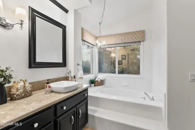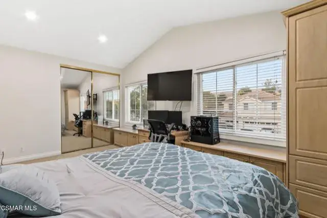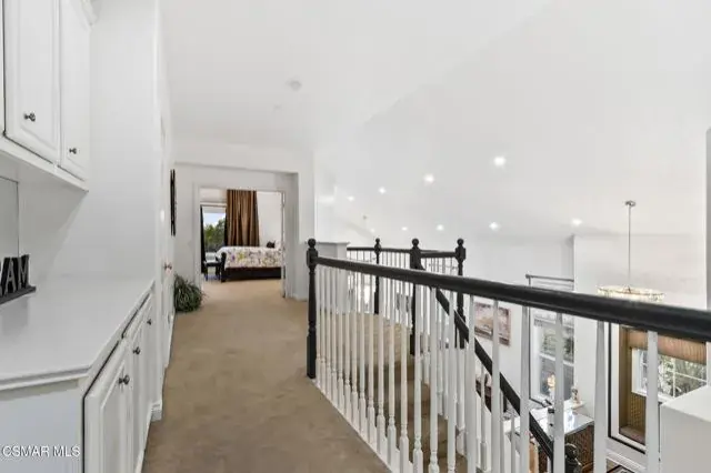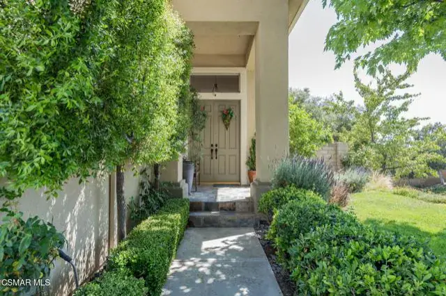 Don’t miss the opportunity to live on a secluded cul-de-sac in Campus Hills, the highly desirable Moorpark neighborhood! You’ll love entertaining your friends and family from the spacious upgraded kitchen featuring a fantastic island, stainless steel appliances including drawer-style dishwashers, solid countertops, and a tile backsplash. The kitchen opens to the large family room, where you will find great custom built-ins and a cozy fireplace. There is plenty of space, including an open living room and formal dining room with vaulted ceilings, and tons of windows that let the beautiful natural light inside. Upstairs, you’ll find the spacious owner’s suite with a large, upgraded bathroom that simply must be seen, a generous walk-in closet, vaulted ceilings, a fireplace, and a view of the mountains. Additionally, you’ll find three large bedrooms and a full bathroom. Downstairs features the fifth bedroom, a nicely upgraded 3/4-bathroom, and an indoor laundry room. Recessed lighting has recently been added that really brightens this home in the evenings. The backyard features an awesome collection of fruit trees, plenty of privacy hedges, a built-in grill area, and retractable sunshades over the patio. This beautiful home is conveniently close to Moorpark College, Campus Canyon College Preparatory Academy (K-8), two community pools, four local parks (including a great dog park), Happy Camp Canyon’s 3,000 acres of hiking and riding trails, and the beautiful Rustic Canyon golf course. This home will go fast, make sure it’s yours!