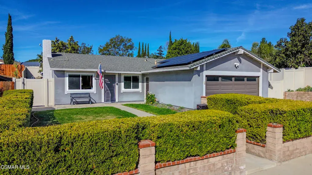 Comfort, convenience, and effortless everyday living come together in this Moorpark home, and it’s one that deserves your attention.This move-in ready Campus Park home features a well-balanced layout designed for both connection and separation when you want it. Two fully finished living areas — a rarity for this model — truly set it apart. In addition to the light-filled front living room with a remote-operated fireplace, there’s a separate rear den ideal for movie nights, play space, or a relaxed second lounge. The natural flow between living, dining, and kitchen areas makes hosting feel seamless. The kitchen features marble countertops, white cabinetry with glass accents, and stainless steel appliances. Fresh interior paint throughout creates clean, cohesive rooms that feels polished and refreshed. Out back, enjoy a private yard with no elevated neighbors overlooking you, enhanced by vinyl fencing and a side-yard shed for added privacy and practical storage. Mature fruit trees — avocado, guava, and lemon — plus fresh mint and jalapeno bring true California garden living to your backyard. Solar panels installed in 2022 enhance energy efficiency, while smart home features including a Ring doorbell, Kasa dimmers, and a Google Nest thermostat add everyday convenience. Homes in Campus Park offering this combination of layout, privacy, and upgrades don’t come around often. With a nearby neighborhood park and playground, dog park, the teaching zoo at Moorpark College, and easy access to the 118 Freeway, this home delivers lifestyle, location, and long-term value in one package.