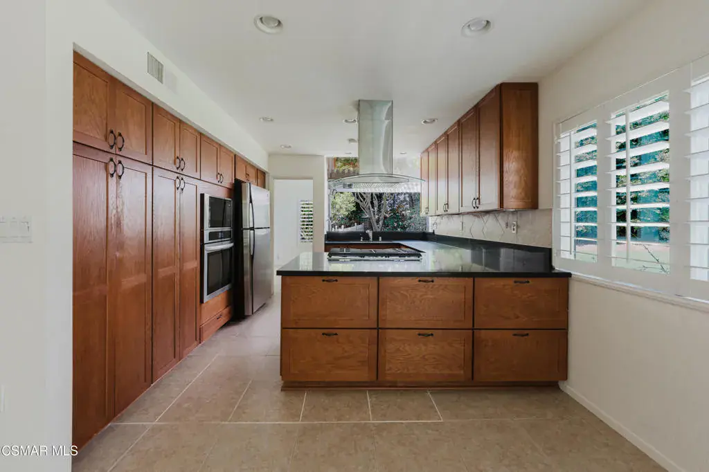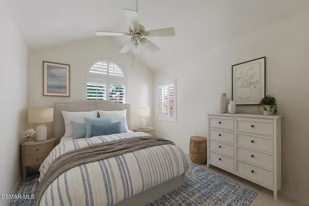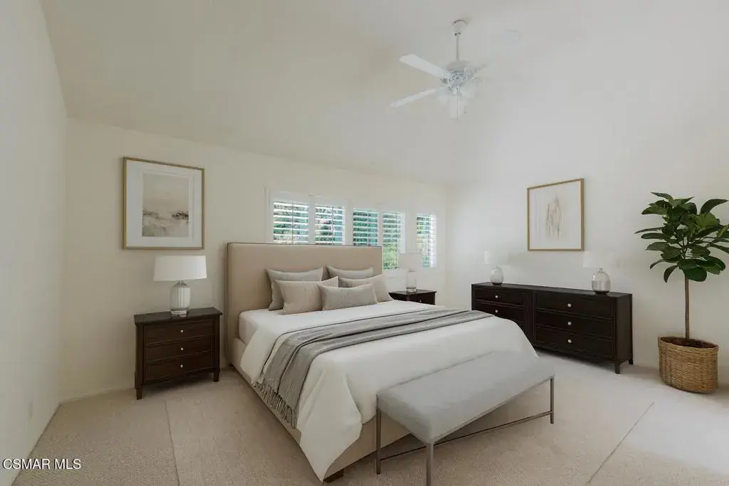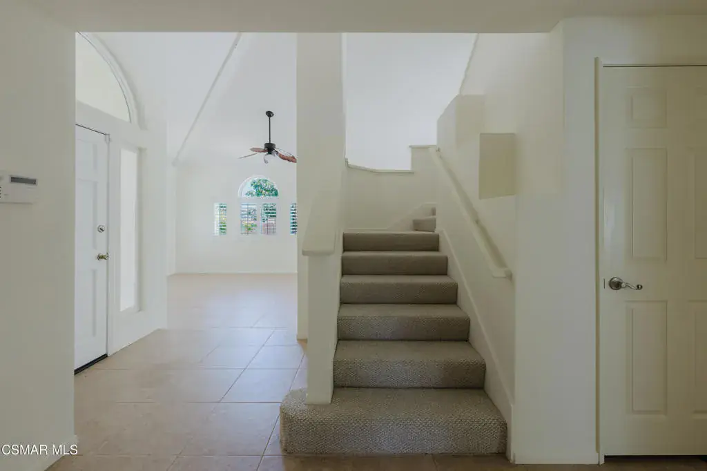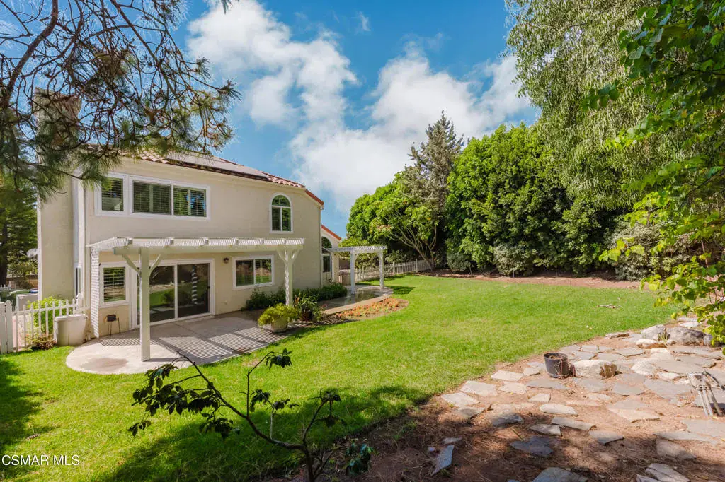 Welcome to 4540 Mill Valley a rare Portofino model located in a highly desirable Design Editions tract of Moorpark. Situated on a private 14,600 square foot flag lot, this home is set back at the end of a beautifully maintained tree-lined private driveway with parking for at least three vehicles in front of an attached two-car garage. This spacious Four bedroom. three bathroom home includes a downstairs Flex/ Space and an adjacent three quarter bath- ideal for guest or a home office.The kitchen and all the appliances were updated approximately five years ago, and the home features newer dual-pane windows. a recently tuned-up roof. a tankless water heater, and a newer Furnace. The upstairs laundry room adds convenience, and there’s a loft area with a built in desk perfect for a workspace or quiet retreat. Additional highlights include custom plantation shutters, vaulted ceilings, two fireplaces, and bright open layout with abundance or natural light. The backyard is perfect for relaxing or entertaining, with newly fresh sod, fruit tree and garden area,,covered two patio areas, and plenty of space. The home is equipped with a Tesla solar system, and two Powerwall batteries a monitored alarm system, sump pump drainage system maintained annually, fresh interior and exterior paint. The spacious primary suite features double door entry, vaulted ceilings, a walk-in closet, full bath with skylight, and large windows with plantation shutters.There are three additional bedrooms upstairs with a full bath in the hallway.Located near top-rated schools, transportation, the Metrolink, and the new exciting High Street Depot, with shops, restaurants, parks, tennis courts, and a theater. This home offers ideal balance and privacy, comfort and convenience , Homes in the tract rarely come on the market-don’t miss this opportunity.*VIRTUALLY STAGED/ ROOM FOR POOL*